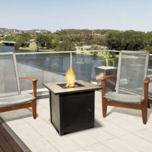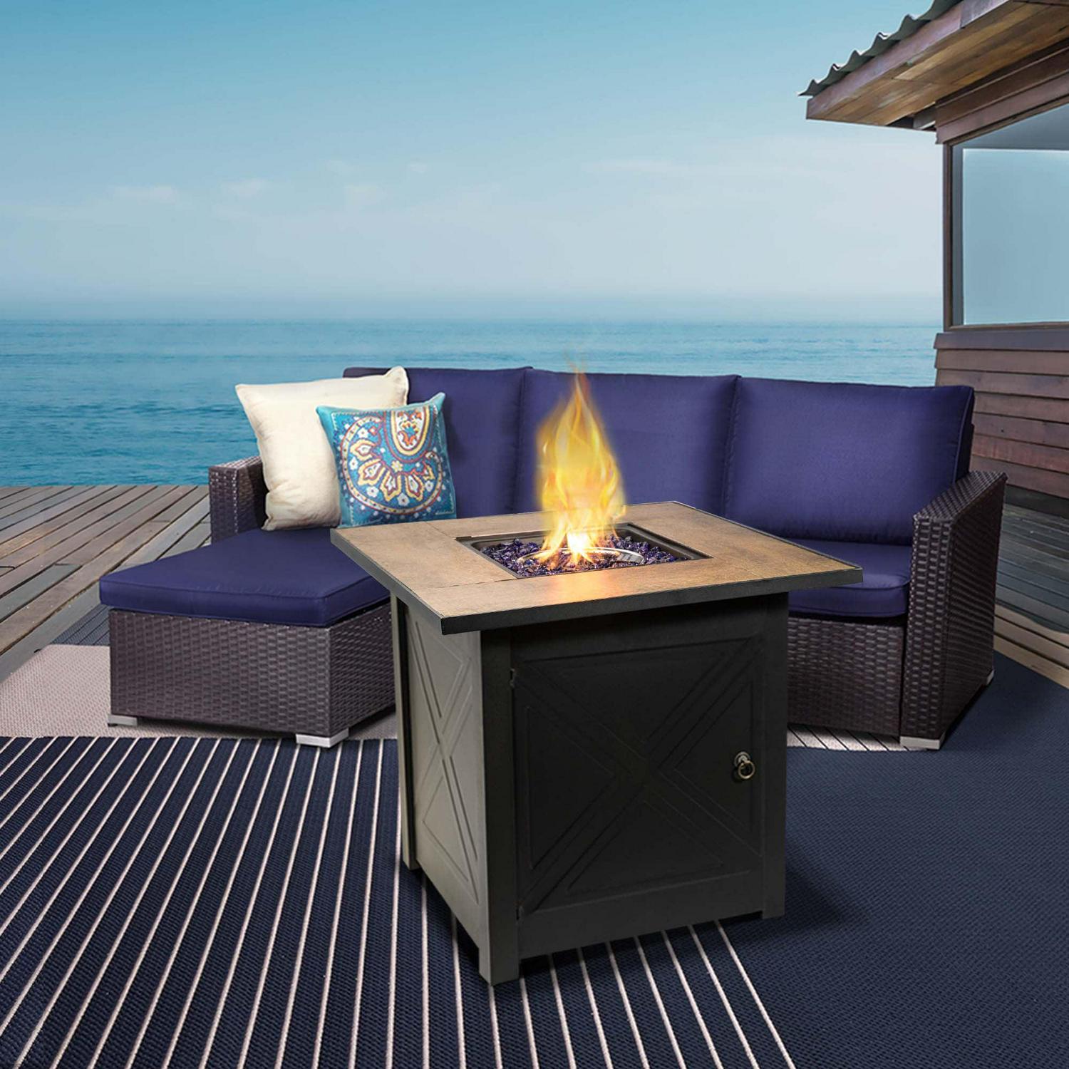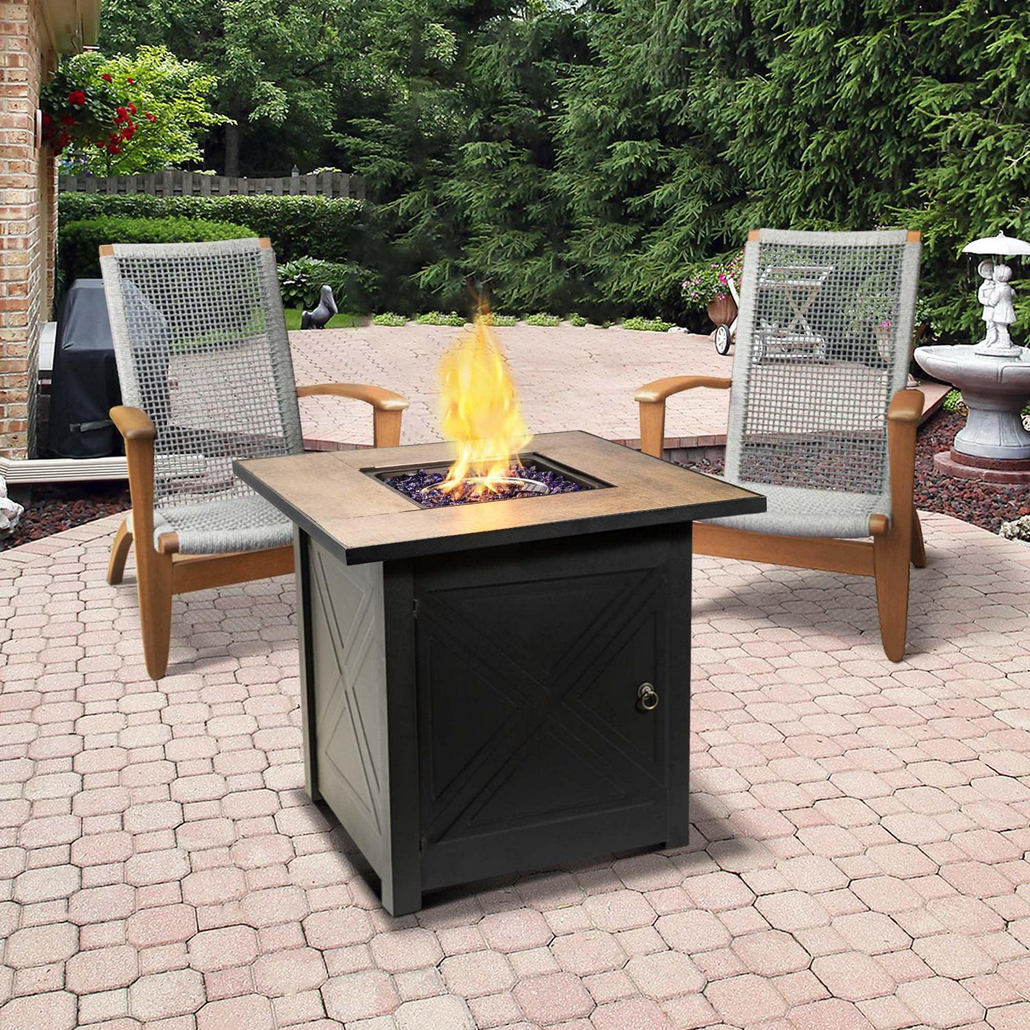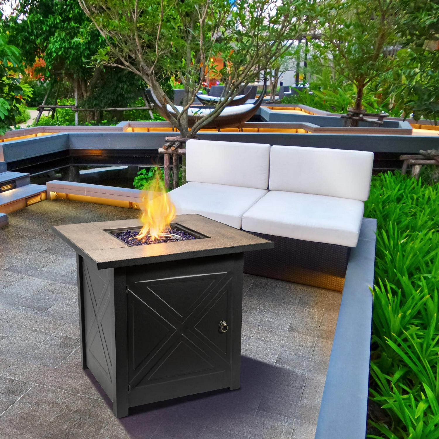 Teamson Home Outdoor Square 30 Propane Ceramic Gas Fire Pit with Steel Base, Black/Stone
