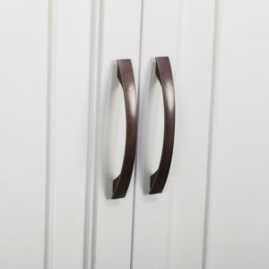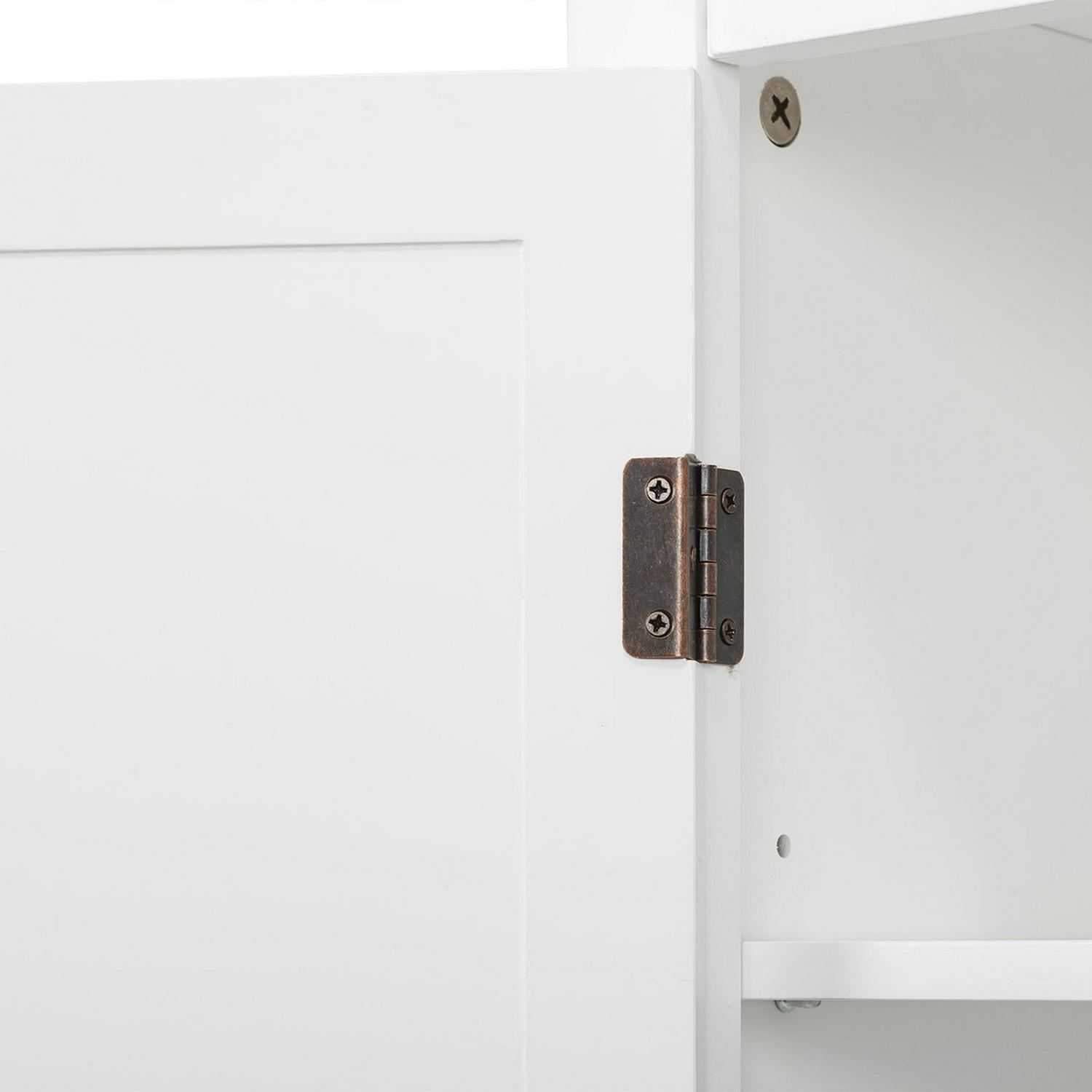 – Spotless white finish combined with clean lines and rubbed bronze finish door pulls , making this bathroom cabinet storage simple and classy.