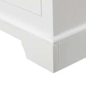 Upgrade your home storage while adding modern style with the Teamson Home St. James Wooden Floor Cabinet with 3 Shelves. This decorative cabinet features a sleek white finish with a crown molded top and a minimalist silhouette for a beautiful addition to your space. The 3 included interior shelves make this cabinet a functional solution to your storage needs. Constructed from durable engineered wood, this storage unit is built to provide you with long-lasting organization. Easy, step-by-step instructions and all of the hardware needed for installation are included for quick assembly. Purchase this stylish floor cabinet alone or with other items from the St. James collection for a cohesive, updated look. The Teamson Home St. James Wooden Floor Cabinet with 3 Shelves measures 24″ x 12.5″ x 32″ to provide accessible storage without taking up too much space in your living area or bathroom.