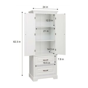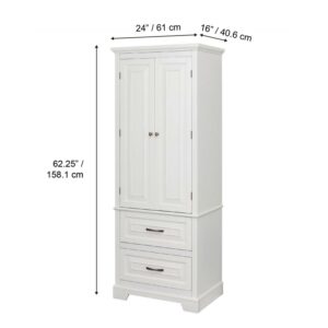 – Style: This tall storage cabinet with perfect proportion features in elegant and modern classic white finish style. Thanks to its neutral white hue, this clean-lined design is sure to blend with any existing ensemble, suitable for all styles and designs of bathroom.
