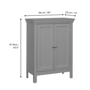 Teamson Home Stratford Contemporary Wooden Floor Storage Cabinet with Two Doors and Three Shelves, Gray