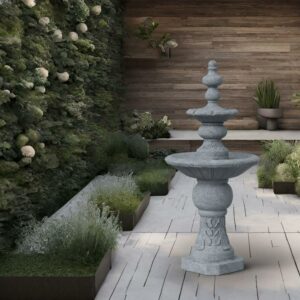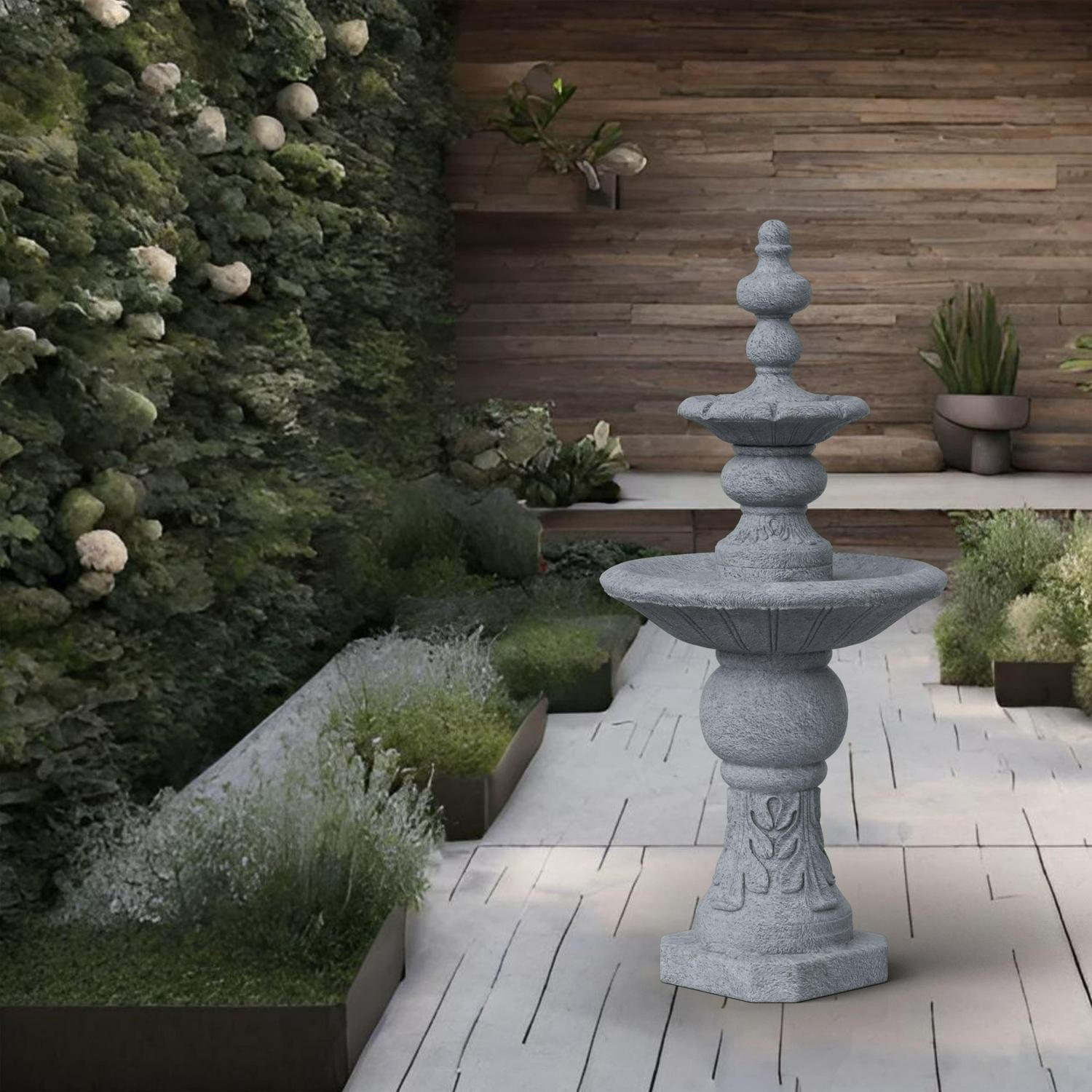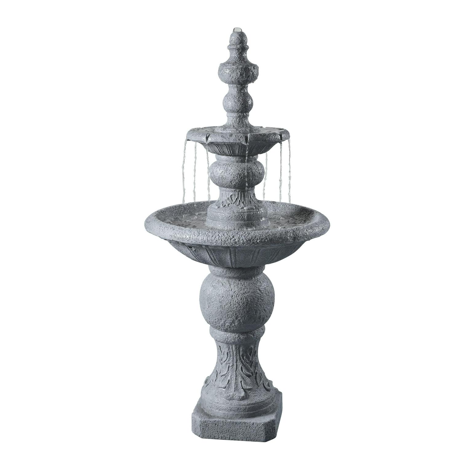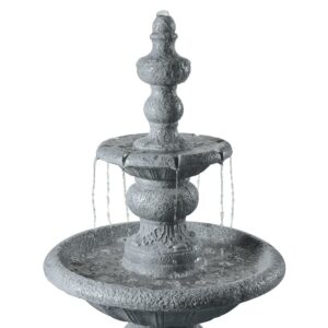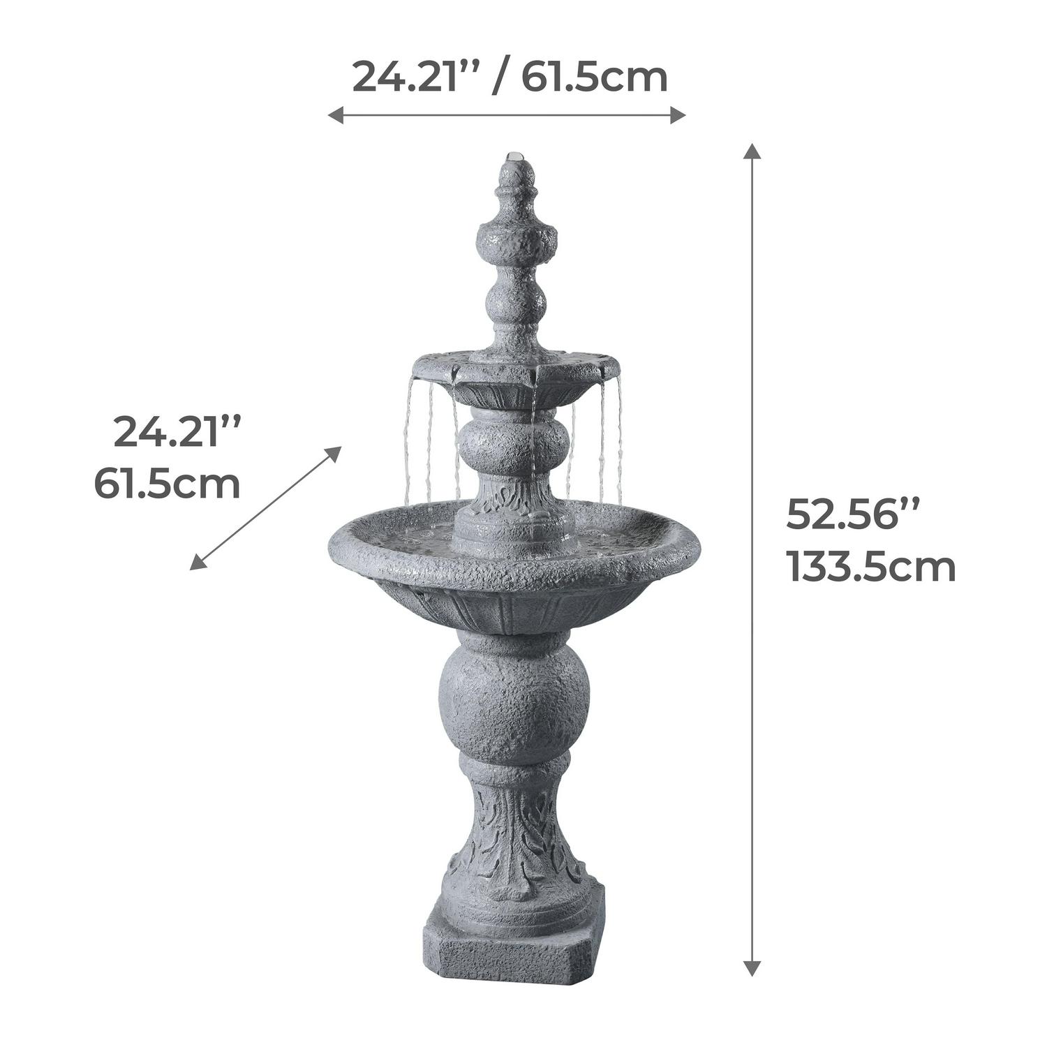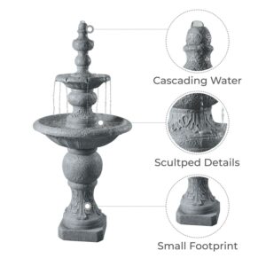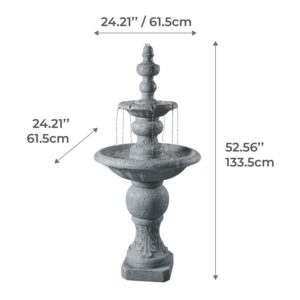 Create an outdoor oasis with the elegant Teamson Home Outdoor Icy Stone 2-Tier Waterfall Fountain. This tiered pedestal fountain provides a tranquil and soothing addition to your porch, backyard, or sunroom. Featuring a timeless, 2-tier design with an icy natural stone finish, with carved stone details, this cascading fountain is a stylish addition to your home’s outdoor area. Constructed from durable polyresin with a natural look and realistic stone texture, the fountain is weatherproof, rust-resistant, and resilient. Relax to the sounds of the soft, natural water flow as it trickles down from the top tier of the fountain to the larger tier below. This modern floor fountain provides an elegant addition to your yard, and gives your garden visual interest with its timeless design. For quick installation and convenient operating, the water fountain includes all necessary parts and a pump. This decorative water fountain measures 24.21″ x 24.21″ x 52.56″ to fit almost any outdoor space.