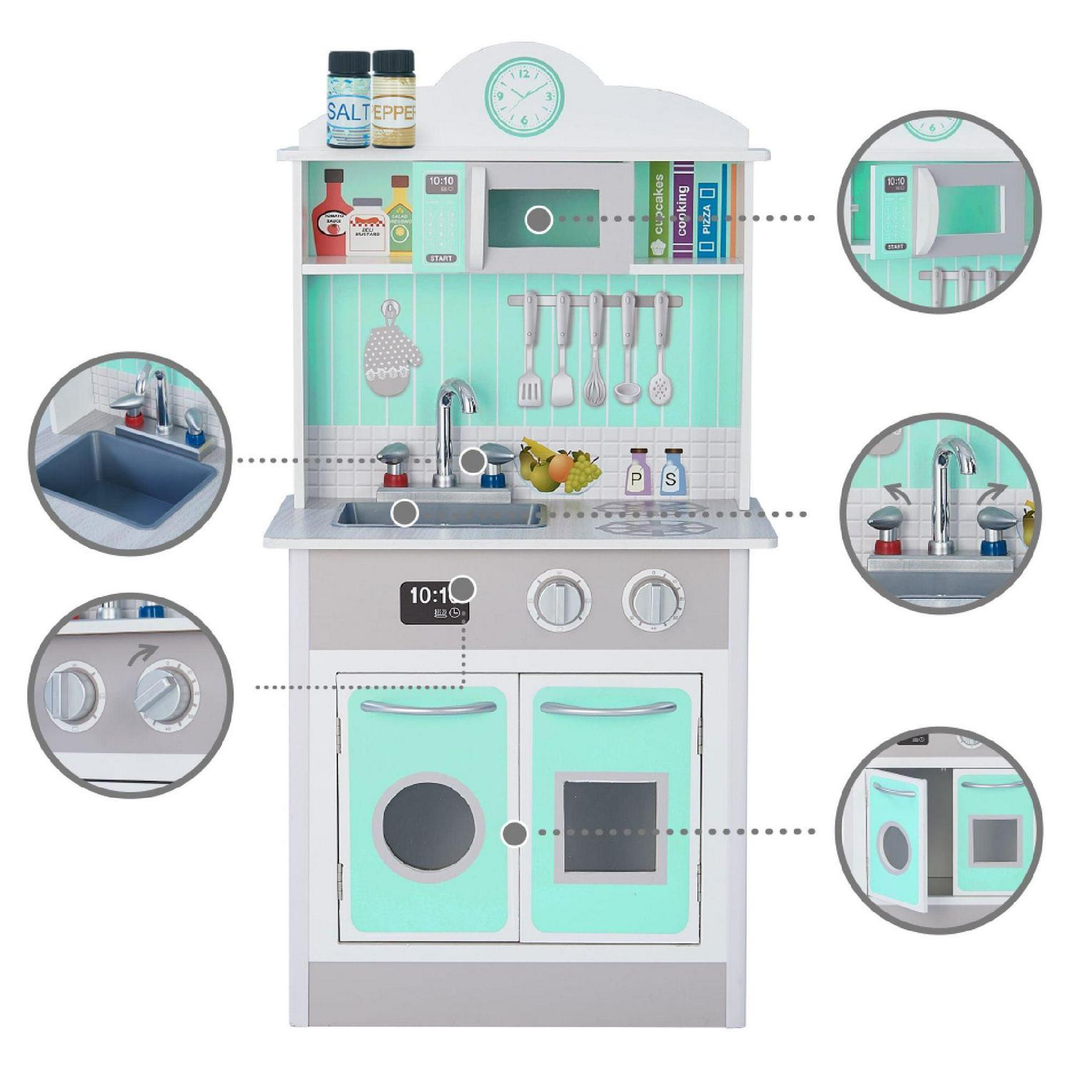 Teamson Kids Little Chef Madrid Classic Play Kitchen with Salt and Pepper Shakers, Mint/Gray