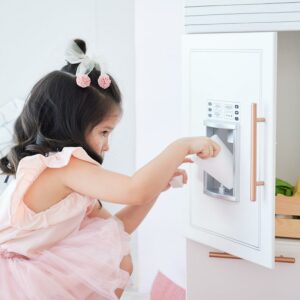 – REALISTIC DETAILS: The knobs on the range stovetop oven turn and click that simulate the sound and feel of real burners, while the built-in icemaker also allows for a realistic play experience!