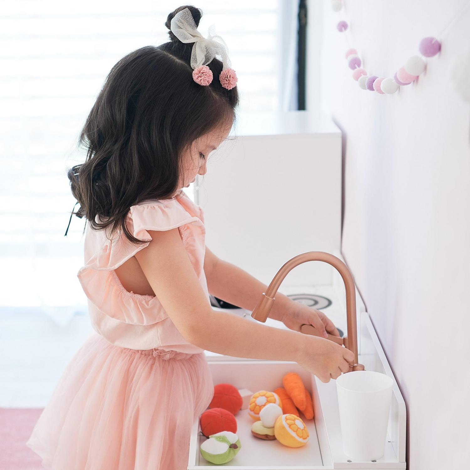 – PLENTIFUL STORAGE: The Paris Play Kitchen is not only gorgeous, but can hold all of your little one’s cooking accessories and toy food, keeping the playroom organized when not in use.