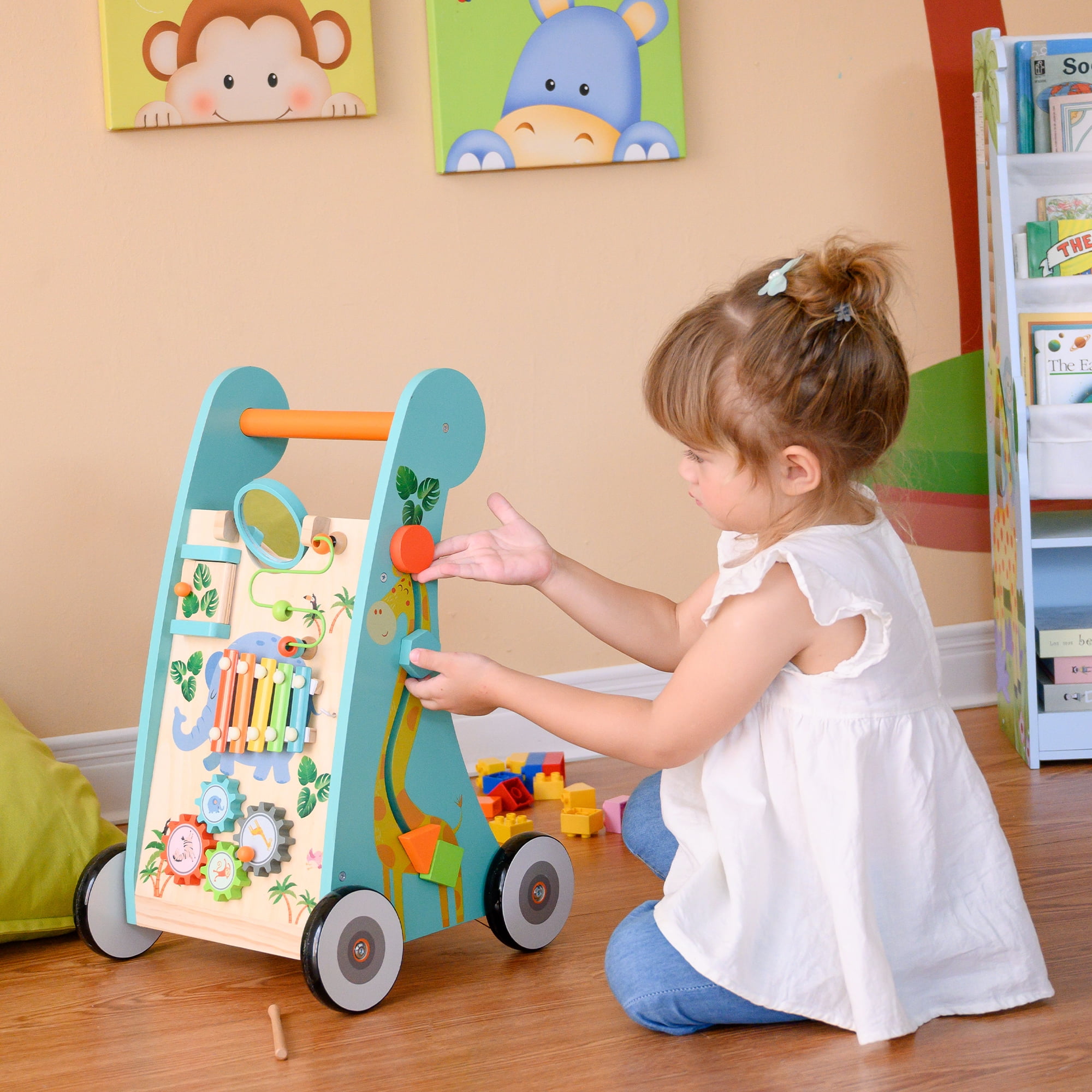 Teamson Kids Preschool Play Lab Safari Animal Toddler Walker & Activity Station