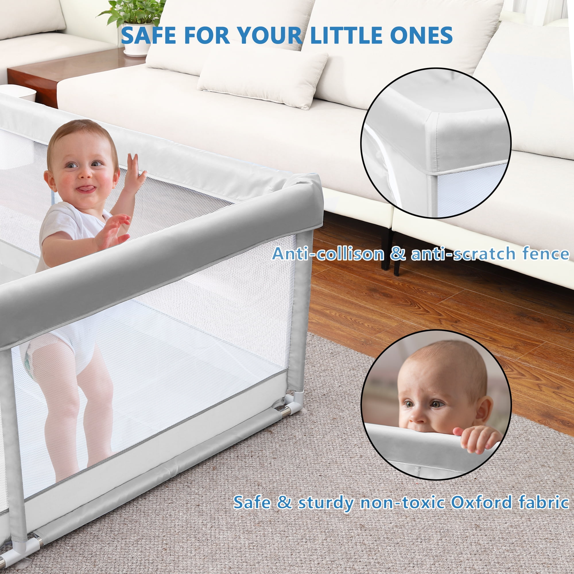 TEAYINGDE Baby Playpen Large Play Yard Fence for Toddlers, 79″x71″ Light Gray