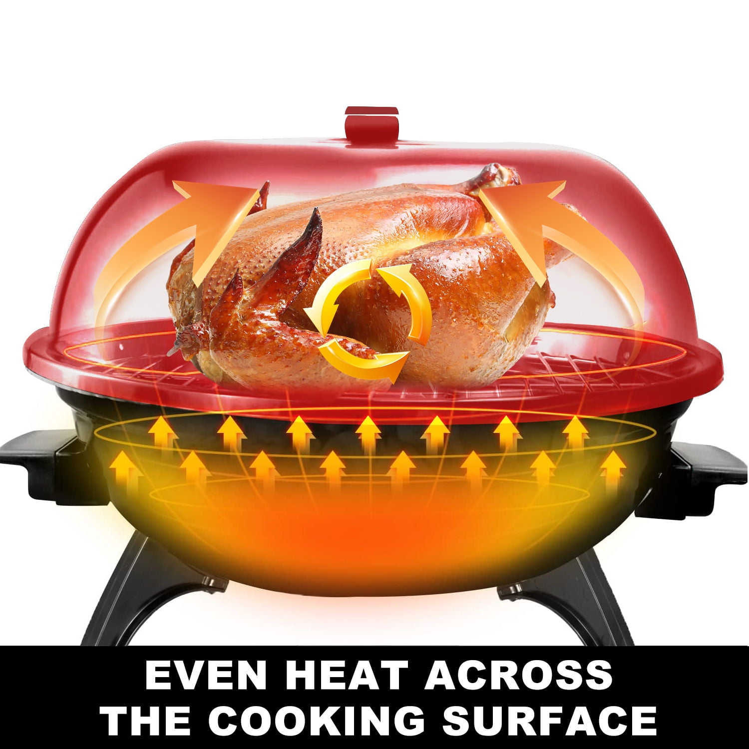 Techwood 11 inch 1600W Electric BBQ Grill with Portable Cooking