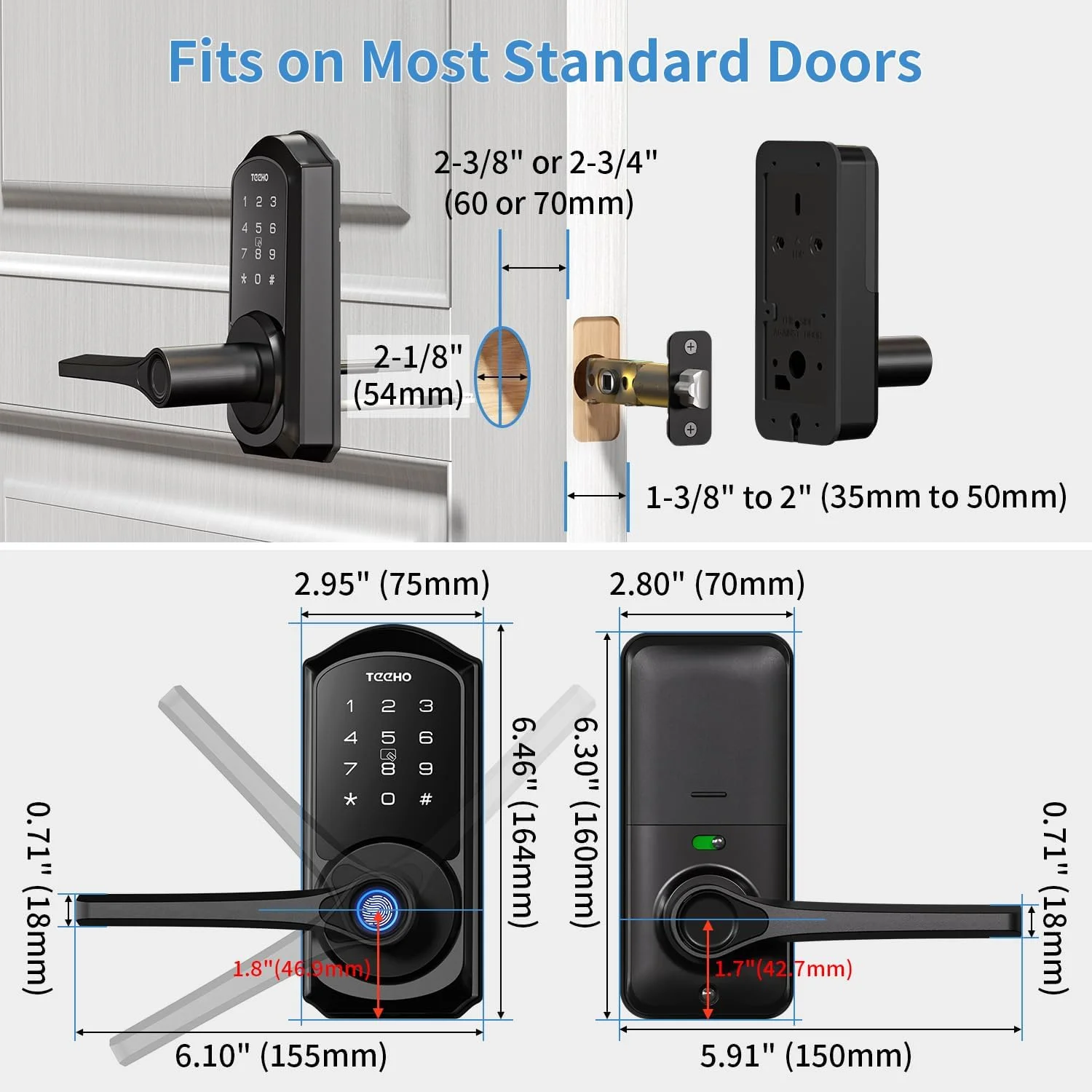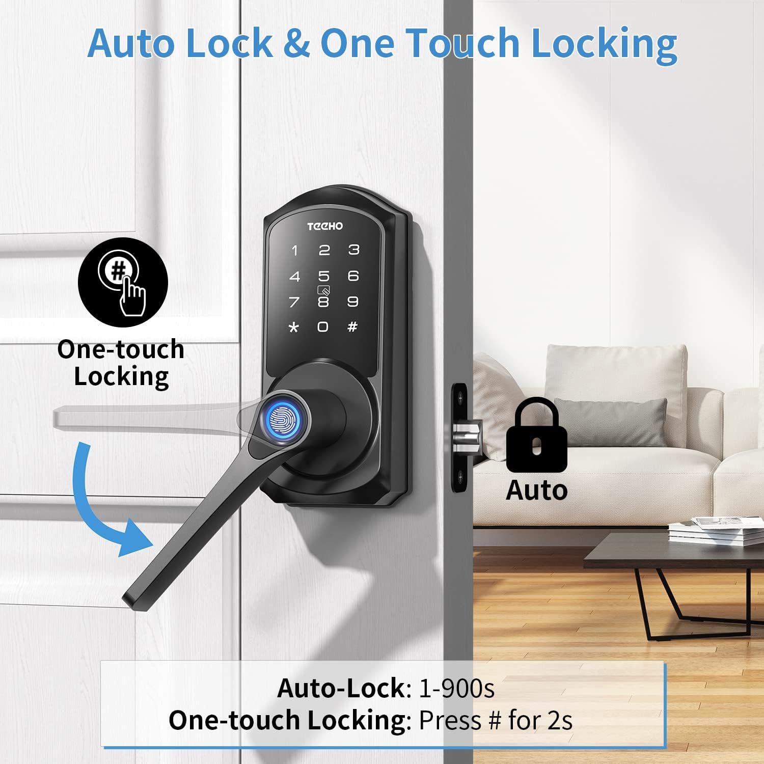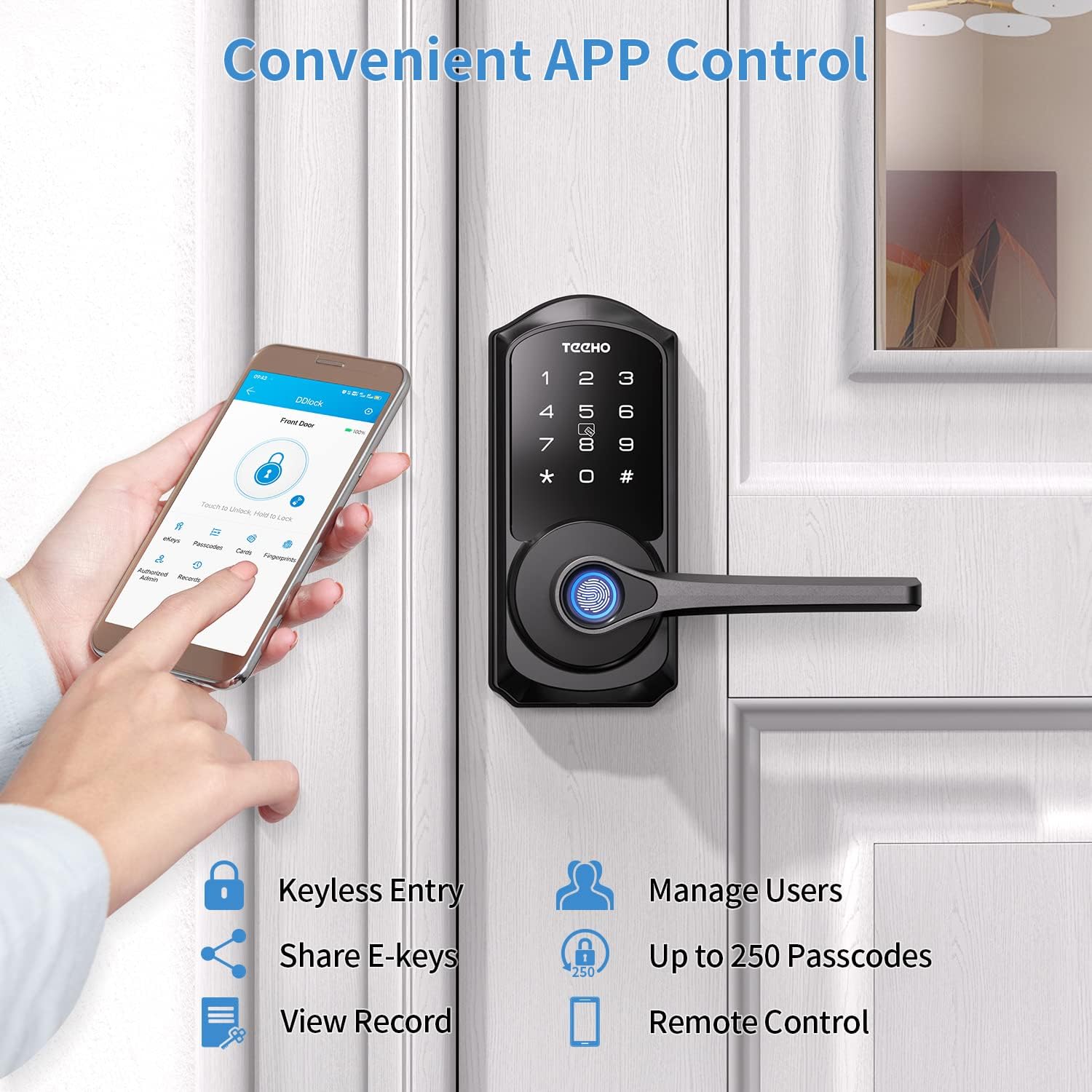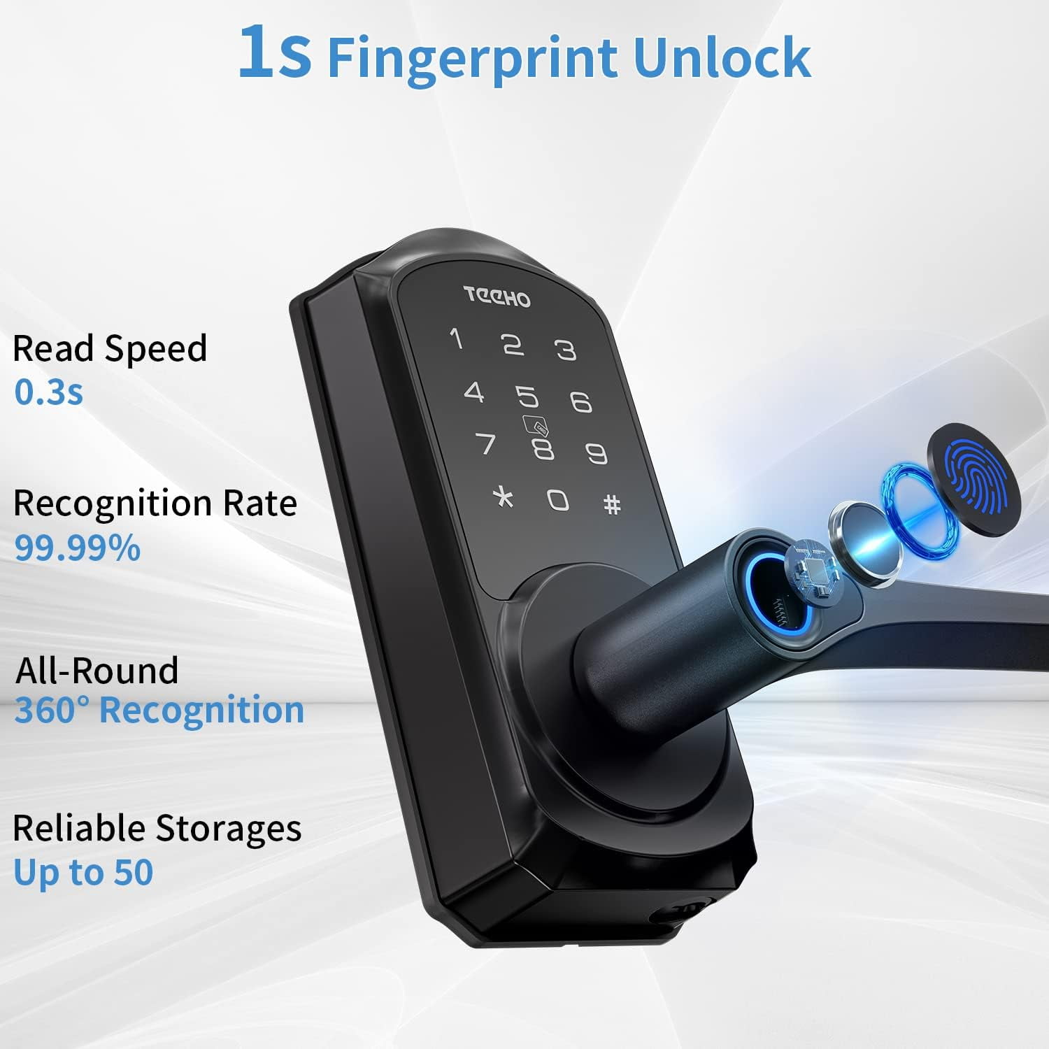 TEEHO Smart Door Lock with Handle, Fingerprint Keypad Deadbolt Lock for Front Door, Keyless Entry Lock with Bluetooth APP, Electronic Auto Lock, IC card, Easy Installation