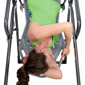 – Grip-and-Stretch Handholds Sturdy grips integrated into the FitSpine bed and frame help enhance decompression and realignment at every angle of inversion.
