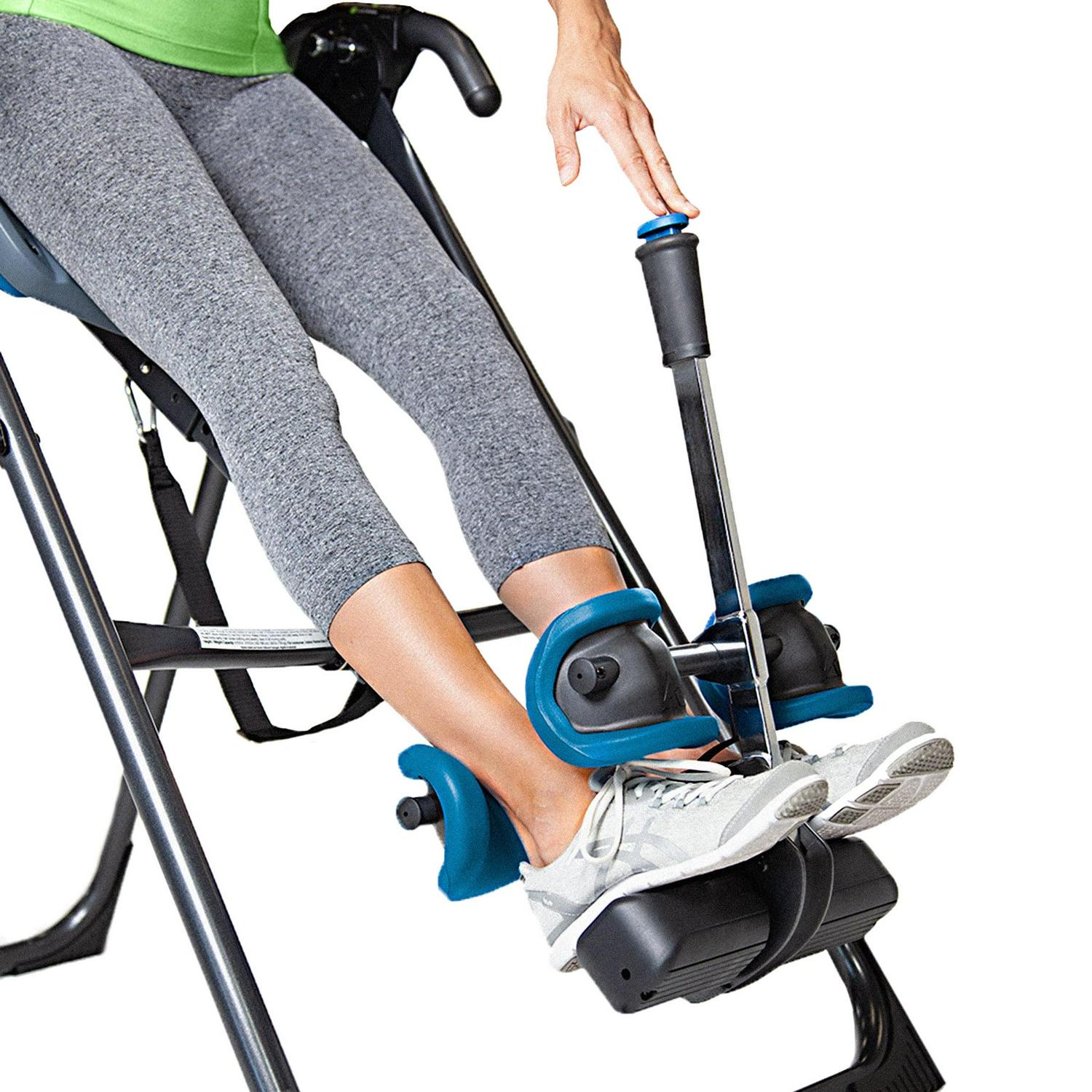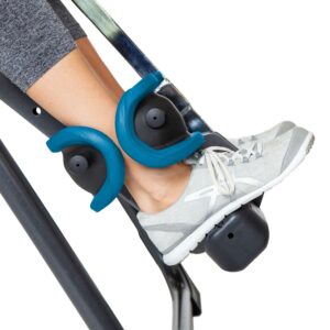 – Deluxe EZ-Reach Ankle System – Ideal for back pain sufferers, the extra-long handle reduces the need for bending when securing the ankles and features a micro-adjusting closure so you can find the perfect fit around your ankles. Stainless-steel locking mechanism provides a secondary gravity-activated lock during inversion.