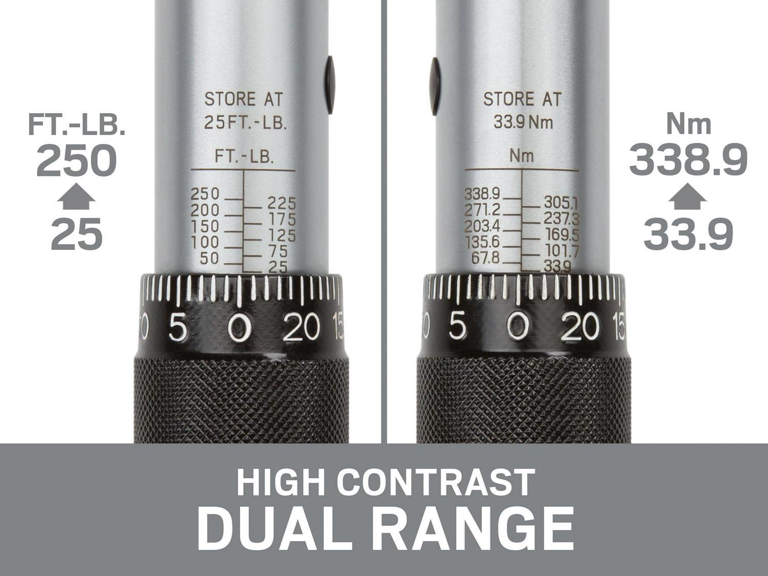 – To help maintain calibration, store at its lowest setting of 25 ft.-lb./33.9 Nm when not in use.