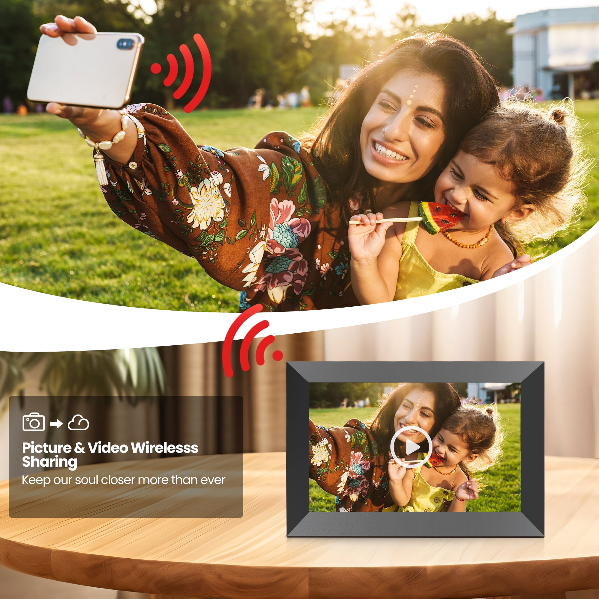 In this digital age, digital photo frames have become a fashion tool to showcase precious moments. Although traditional photo frame can decorate the home, electronic WiFi picture frames lead the trend with their uniqueness. It’s not just a photo display tool, it’s an art. Through the high-definition screen, the wifi digital photo frame shows the true and vivid colors of the photo, as if time stood still in the frame. With the continuous innovation of technology, the smart digital frame for photo has a thin and light design, intelligent touch and other functions, providing users with a more convenient experience. Whether it’s a beautiful moment at a family gathering or a picture of the scenery during a trip, the 10.1inch wifi frame can vividly present these precious memories. Placed in the living room, bedroom or office, the electric wifi photo frame adds a touch of digital warmth to life with its stylish appearance and excellent performance. What Features included in TEMASH 10.1” WiFi Digital Frame ? 1.The digital picture frame display adopted IPS & 1280*800 HD resolution, provide a clear & sharper details in view 2.Wireless wifi connection provide a easier & quicker connection and transmission 3.Built in 32GB large storage allow to upload 80000+ pictures & videos to the cloud , and can also expand the storage to 64GB via an external micro SD card 4.Send instant or timed wishes to your loved one anytime , anywhere. 5.Adopted “Uhale” App is free , secure and safe. 6.Support unlimited user to send photos or videos to the smart frame easily 7.With affordable price and many features equipped, it is pretty popular and suitable as a gift to your parents , lovers, friends, kids in all kind of special days . Such as Birthday, anniversary day, Thanks giving day , Mother Day, Father Day, Christmas and so on.