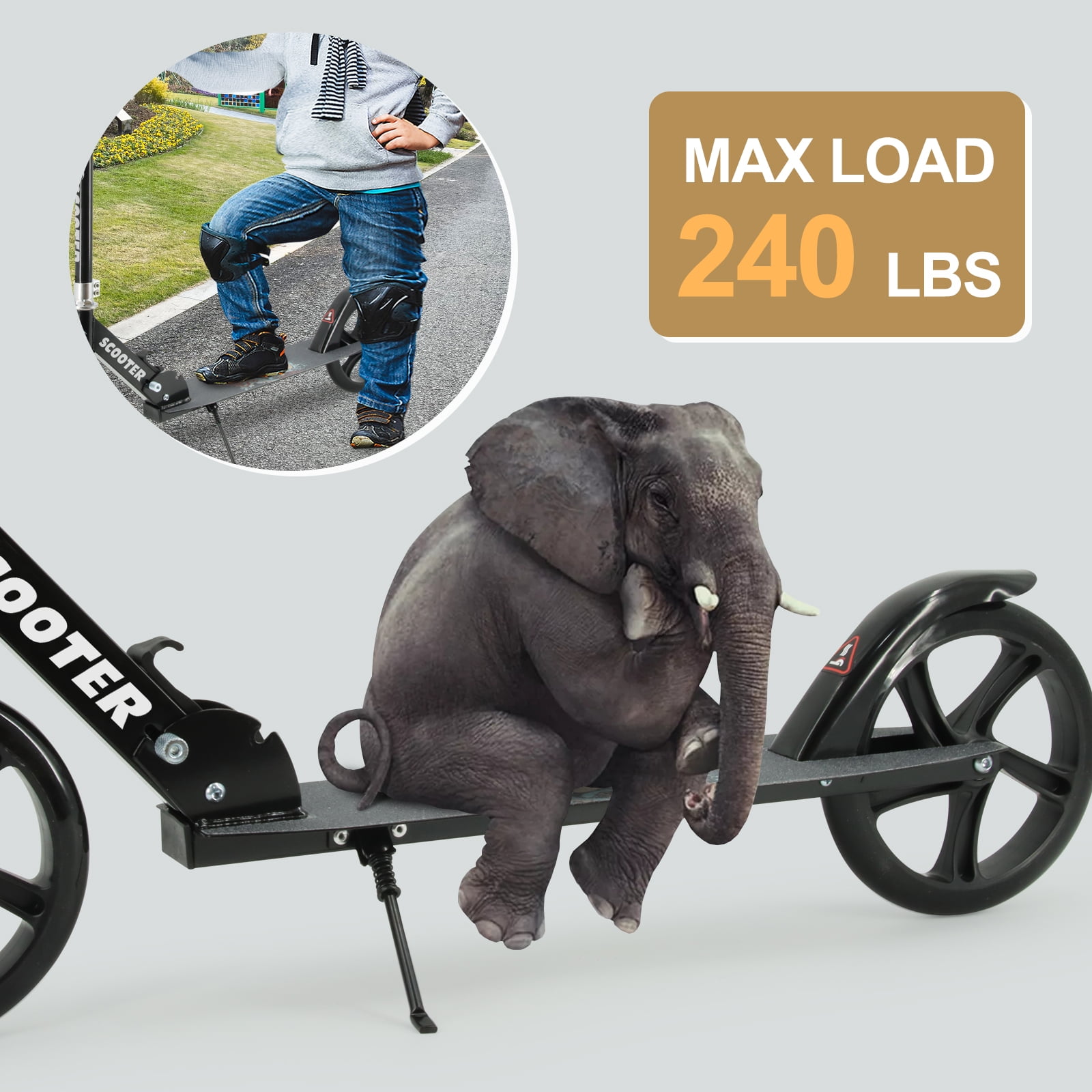 TENBOOM Kick Scooter, Black, 3 Adjustable Levels, for Kids, Teens, and Adults, Max Load 240 lbs