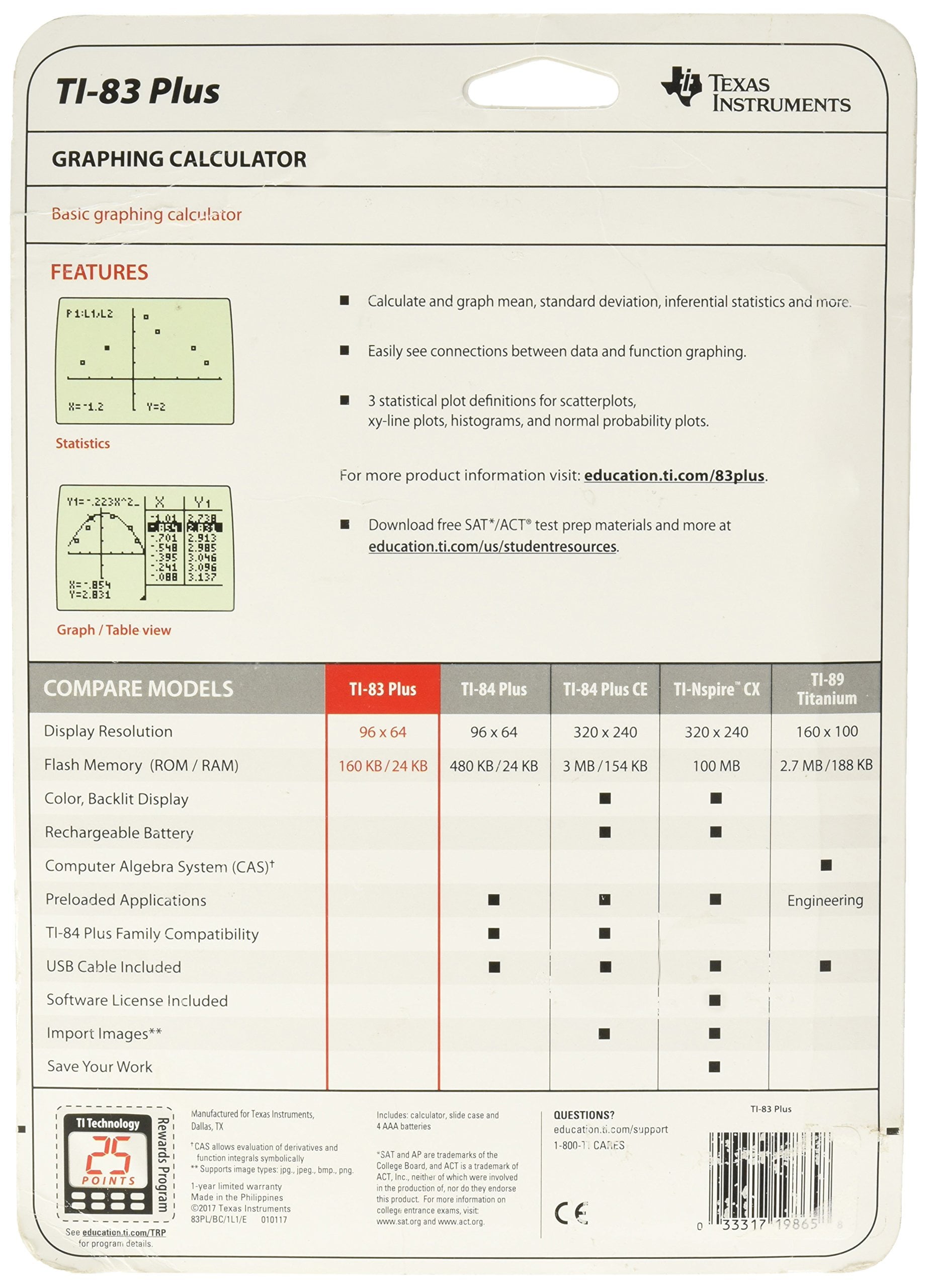 For students in math and sciences, or anyone new to graphing calculators. A powerful, problem-solving tool with features for storing, graphing, and analyzing up to 10 functions. Plus, it displays graphs and evaluates tables on a split screen, allowing you to trace the graph and scroll through table values simultaneously. Advanced statistics and regression analysis, graphical analysis, and data analysis are readily accessed, along with features for calculus, engineering, financial, logarithm, trigonometry, and hyperbolic functions, all crucial tools for advanced analysis.
