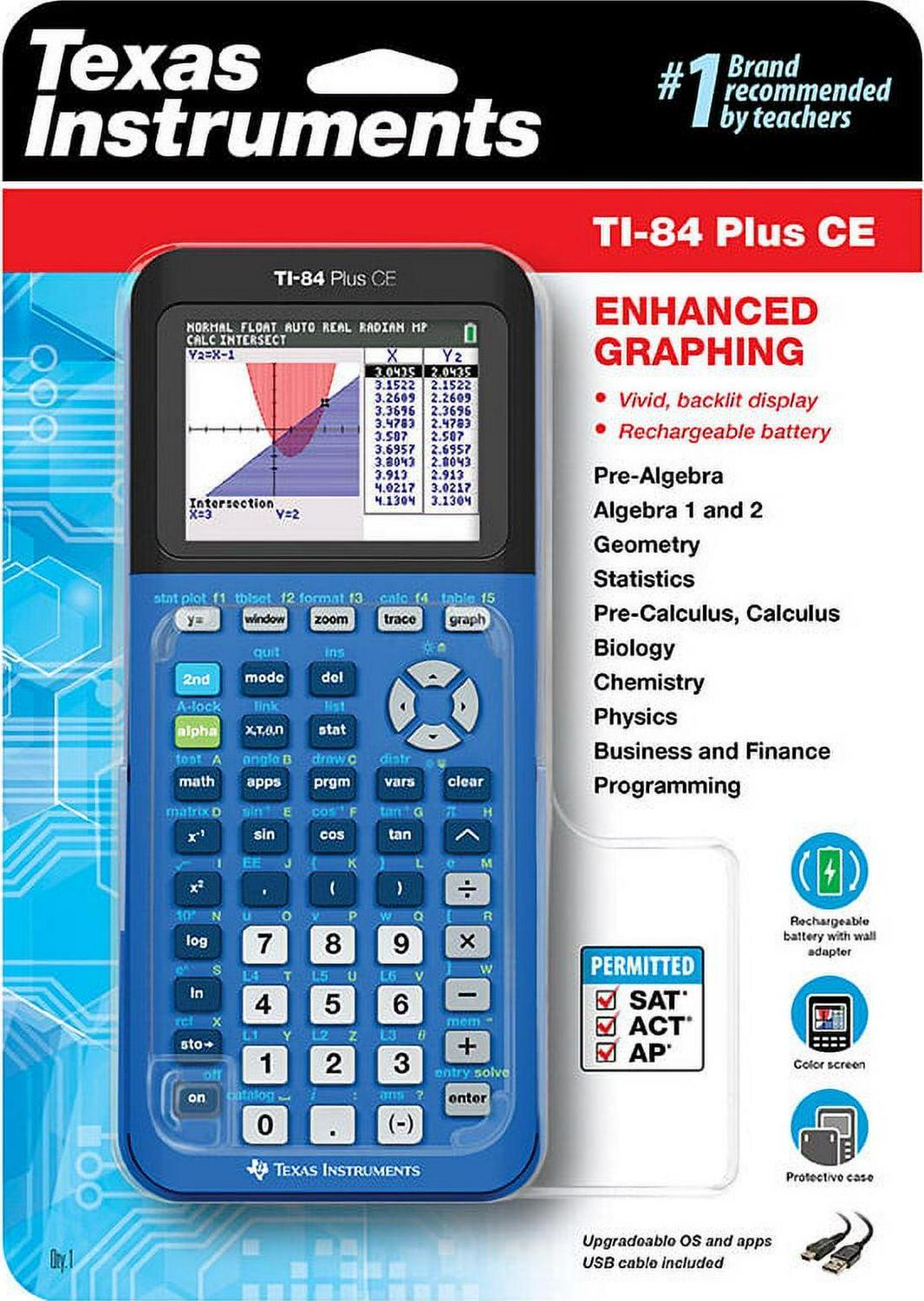 Texas TI-84 Plus CE Color Graphing Calculator Blue