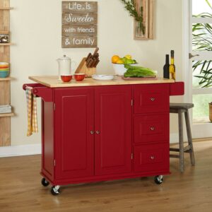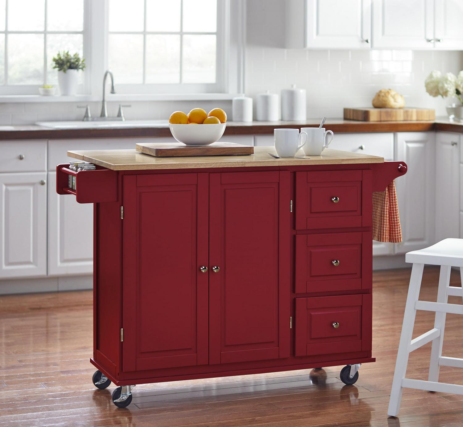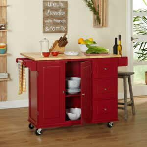Woven Paths Thatcher Kitchen Cart, Red: