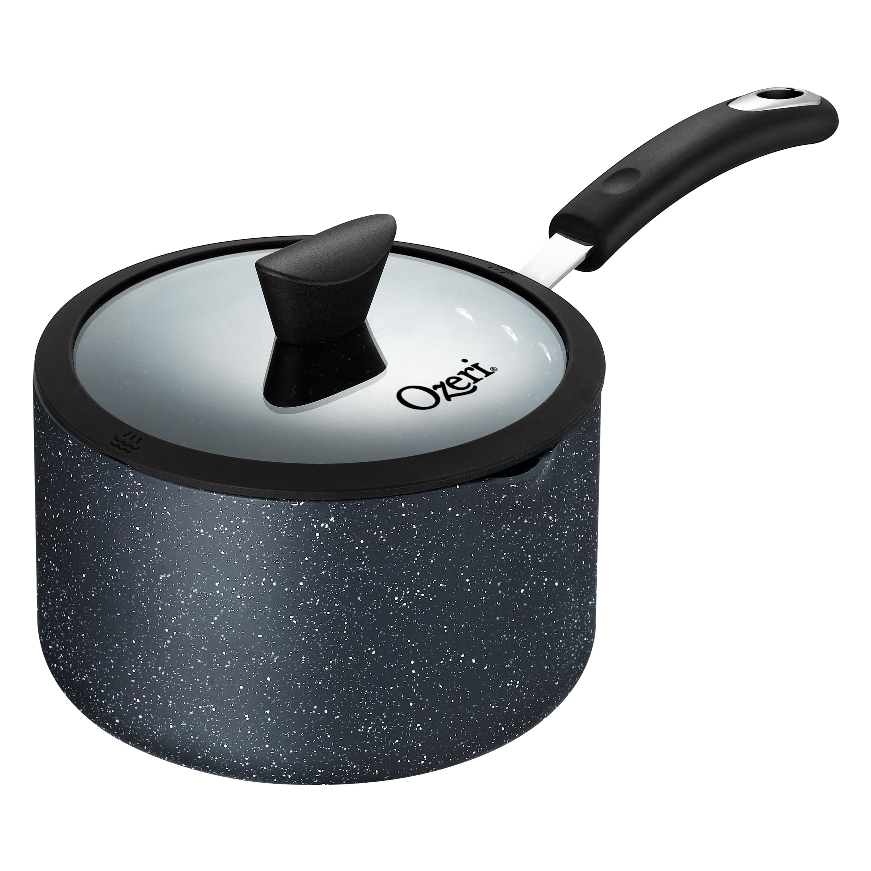 Utilizing a custom-formulated stone-derived coating from Germany, the 3.0 L (3.2 Quart) All-In-One Stone Sauce Pan and Cooking Pot by Ozeri reigns with its ability to deliver non-stick perfection while remaining absolutely free of toxic substances such as APEO, GenX fluorinated chemicals, PFBS, PFOS, PFOA, and the lesser-known chemicals NMP and NEP. According to the FDA, many of these chemicals constitute a worrisome class of nonstick and stain-resistant compounds that have found their way into the food chain, including grocery store meats and seafood. A federal toxicology report has linked a number of health concerns to the presence of these compounds in people’s blood. Although the harmful acid PFOA, and to a certain extent PFOS, have been generally phased out of production, non-stick coatings today are often made with the aid of a new generation of advanced fluoropolymers, known as GenX fluorinated chemicals and PFBS. According to EPA studies on these chemicals, the “data are suggestive of cancer” and when orally consumed, these chemicals may be capable of affecting the kidneys, blood, immune system, liver and developing fetuses. Also of concern are APEO chemicals (Alkylphenol ethoxylates), which are restricted in Germany due to environmental concerns and toxicity in the food chain. Labelled ‘forever chemicals’ due to their poor degradability and tendency to accumulate in people’s bodies, the EPA and FDA have cited consistent studies of people exposed to many of these compounds that suggest associations with several kinds of cancers, liver problems, low birth weight and other issues, concluding that many of these compounds are more dangerous than previously thought. By not using these fluorinated chemicals, the All-In-One Stone Sauce Pan and Cooking Pot’s German-made coating stands ahead of the curve, achieving the highest marks for food safety and environmental health. In addition, the Stone Sauce Pan uses an inert coating that is applied using a water-based Sol Gel Technique which is also free of the lesser known but potentially harmful chemicals NMP (N-Methyl-2-pyrrolidone) and NEP (N-ethyl-2-pyrrolidone), sometimes found in traditional cookware. Hardened for longevity, the Stone Sauce Pan and Cooking Pot is also far more durable and scratch-resistant than other non-stick surfaces. With superior non-stick properties, the Sauce Pan consistently renders cleaning a breeze. The Stone Sauce Pan and Cooking Pot is made of a heavy-gauge aluminum core that allows for even cooking without hot spots. It boasts a magnetized bottom for use on induction stoves, a heat-resistant silicone-coated handle, left and right-handed pour spouts, and a tempered glass lid with a steam release vent and heat-resistant knob. Coating made by Weilburger GmbH, Germany. Sauce pan assembled in China.