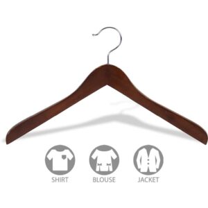 The Great American Hanger Company Concave Wooden Top Hanger with Walnut Finish, Thick Curved Coat Hangers with Chrome Swivel Hook for Jackets or Fine