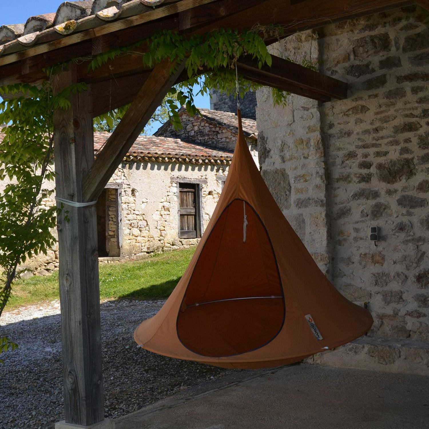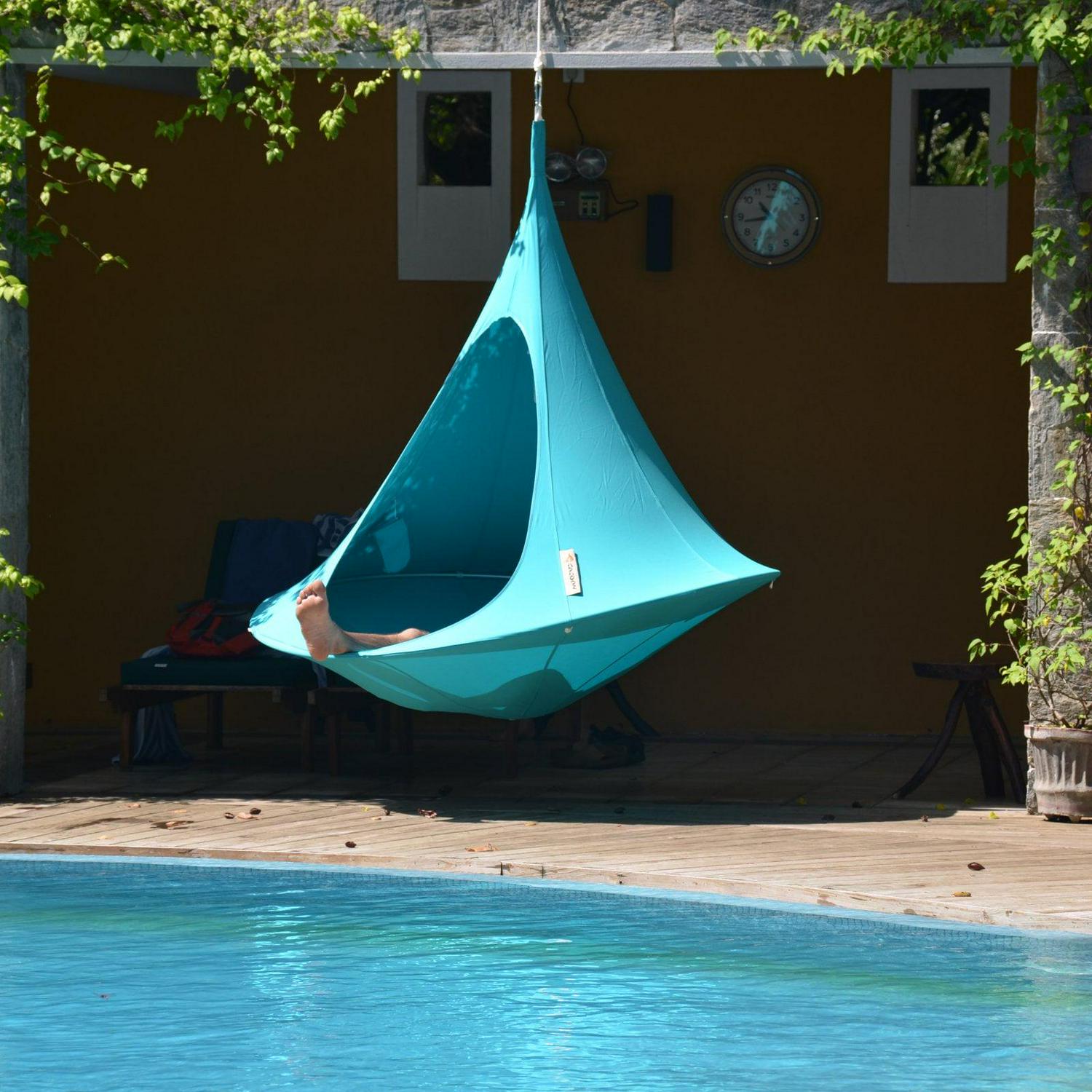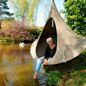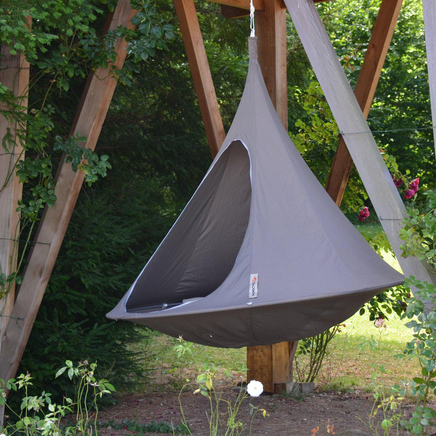 This green two person cacoon chair is perfect for relaxing from the stresses of the day inside or outside. Hang from a tree or from the ceiling in your home for a quick and easy way to relax. Read a book, take a nap or drink a cup of coffee in this chair today!. Features: Two person green hanging cacoon chair. Fits two people . Comes with a bag for easy storage . For hanging chair comes with a nylon hanging system and a carabiner. Maximum weight capacity is 440lbs . Can be used indoors or outdoors. Dimensions: 72 H X 72 W x 72 L. Material(s): polyester, cotton