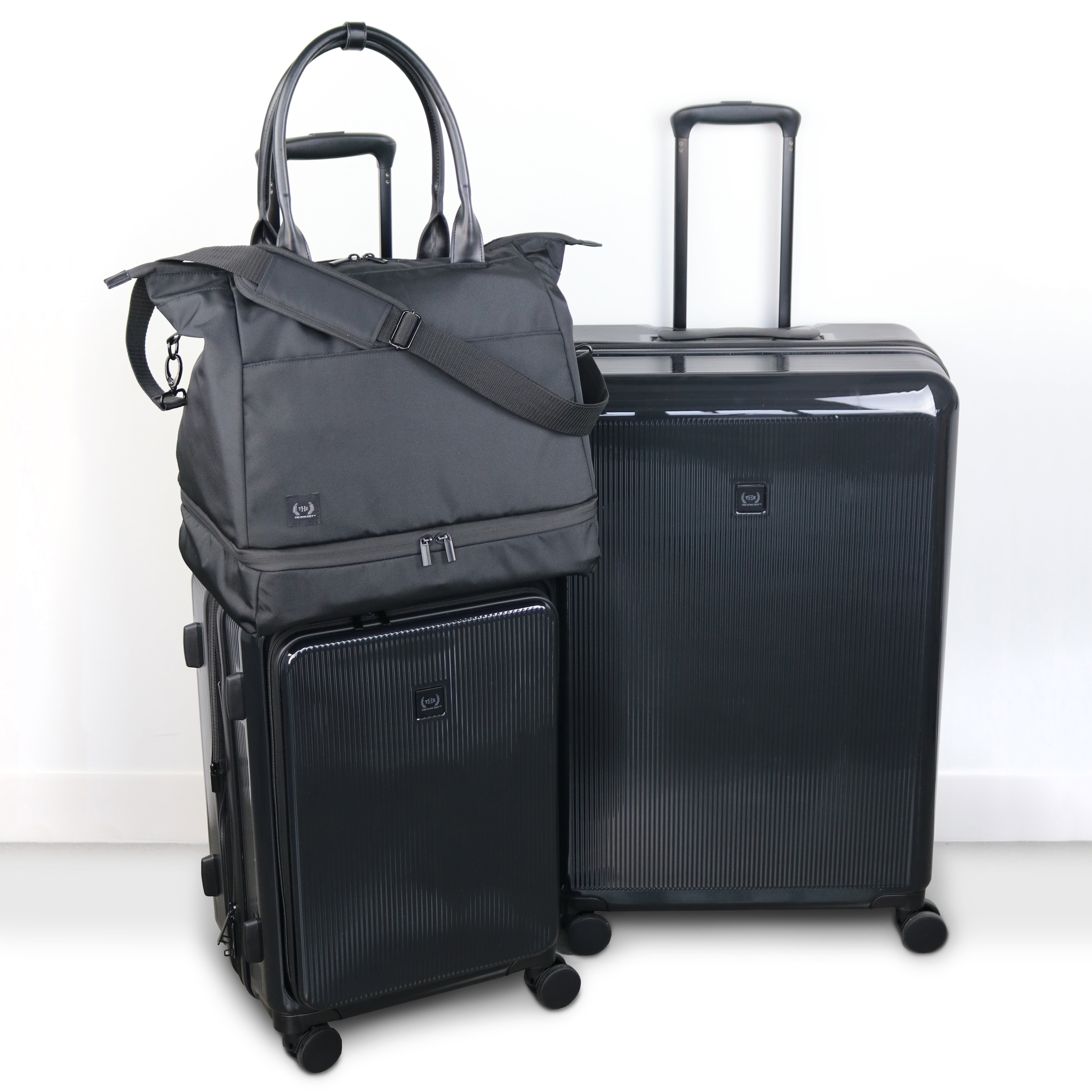 The Home Edit 21″ Hybrid Luggage in 4 colorways – Black, Green, Navy and Lavender Removable interior duffel for extra storage Dimensions: Body 21″ H x 15″ W x 11.5″ D With Wheels 23.5″ H x 15″ W x 11.50″ D and weight 11 lbs ABS Hardsided outer shell Polyester fabric lining TSA lock for security purposes Front pocket unzips for easy access to laptop, tablet and extra organization Inside wet pocket and mesh pocket Compression straps for holding clothing in place during travel 360-degree spinner wheels Matching metal hardware Top and side carry handles and telescopic adjustable handle