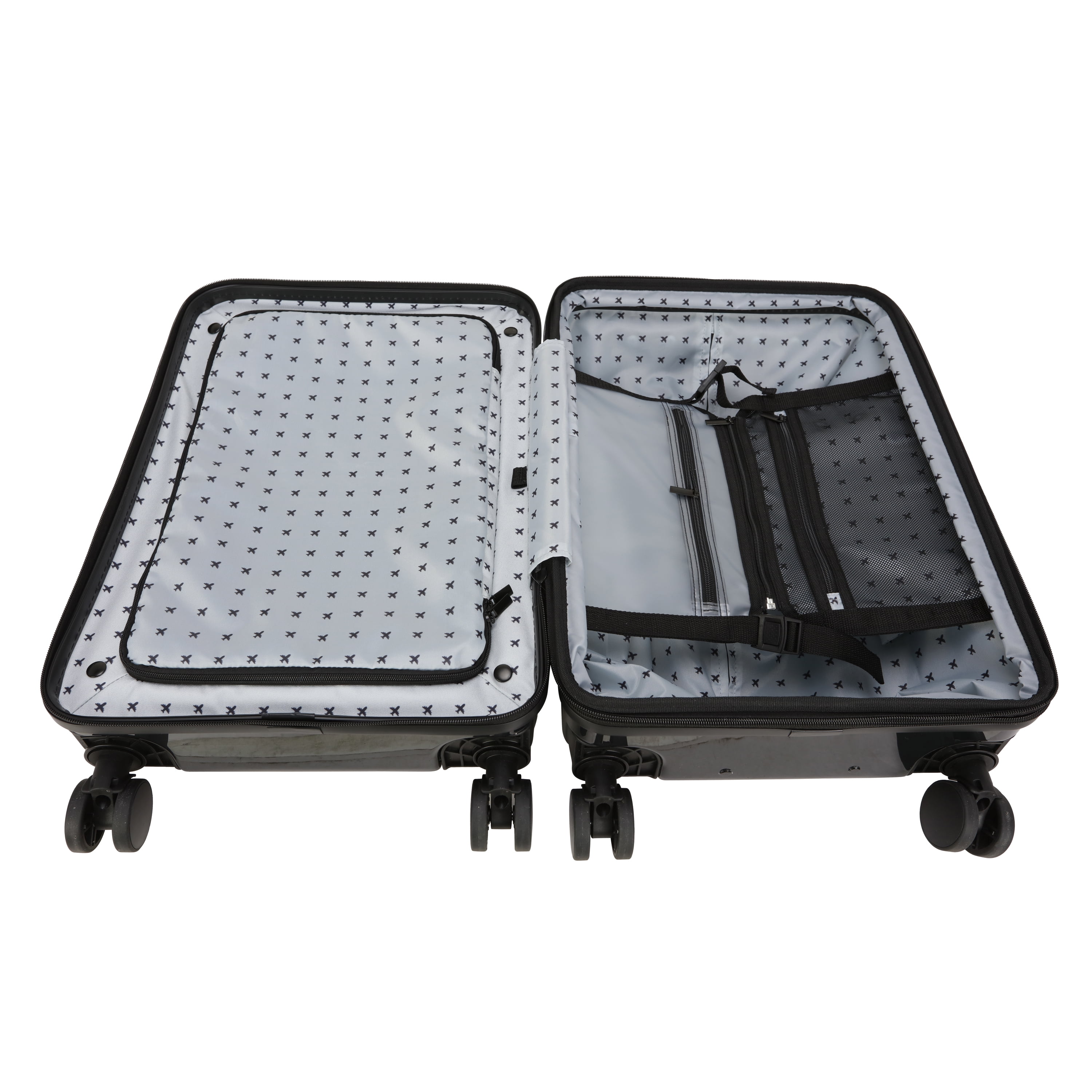Travel Day! Breeze past the baggage claim and onto new adventures with our hybrid carry-on luggage. Featuring a front pocket, 360-degree spin wheels, and a removable duffel bag. Your travel day necessities will stay organized and within reach. Available in black, green, navy and lavender in 2 sizes, 28-inch checked and 21-inch carry-on size exclusively at .