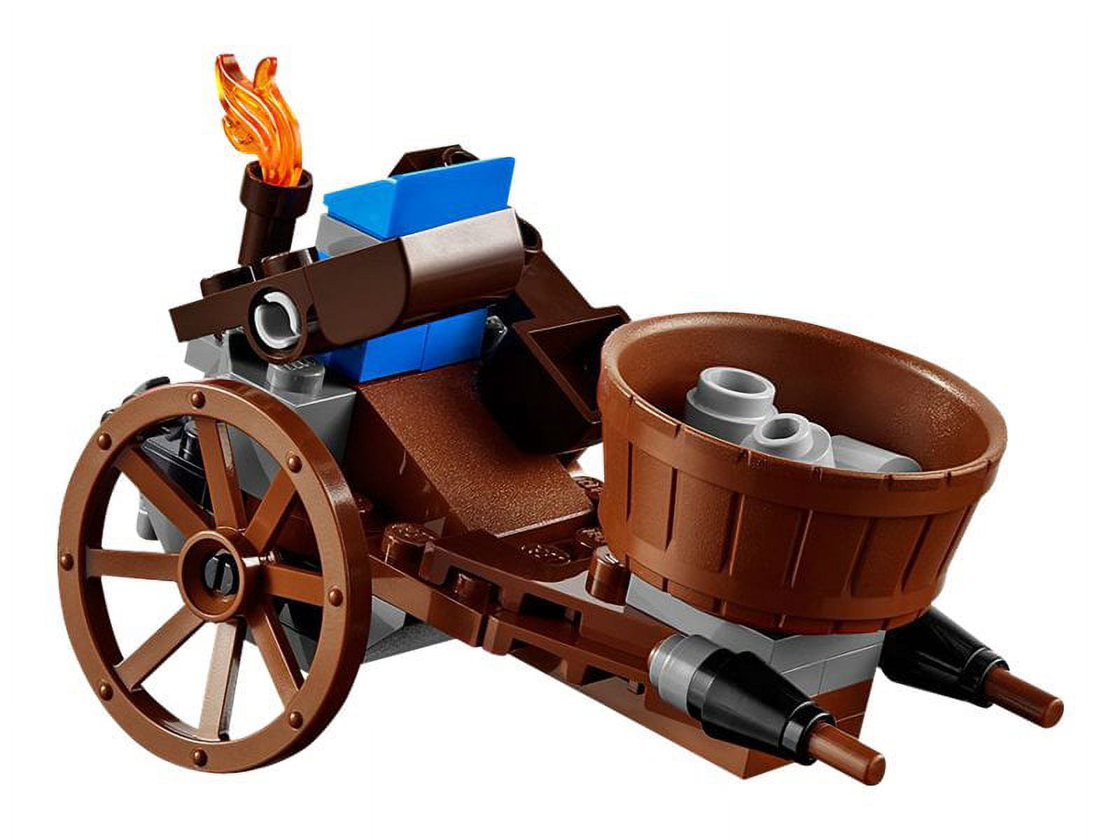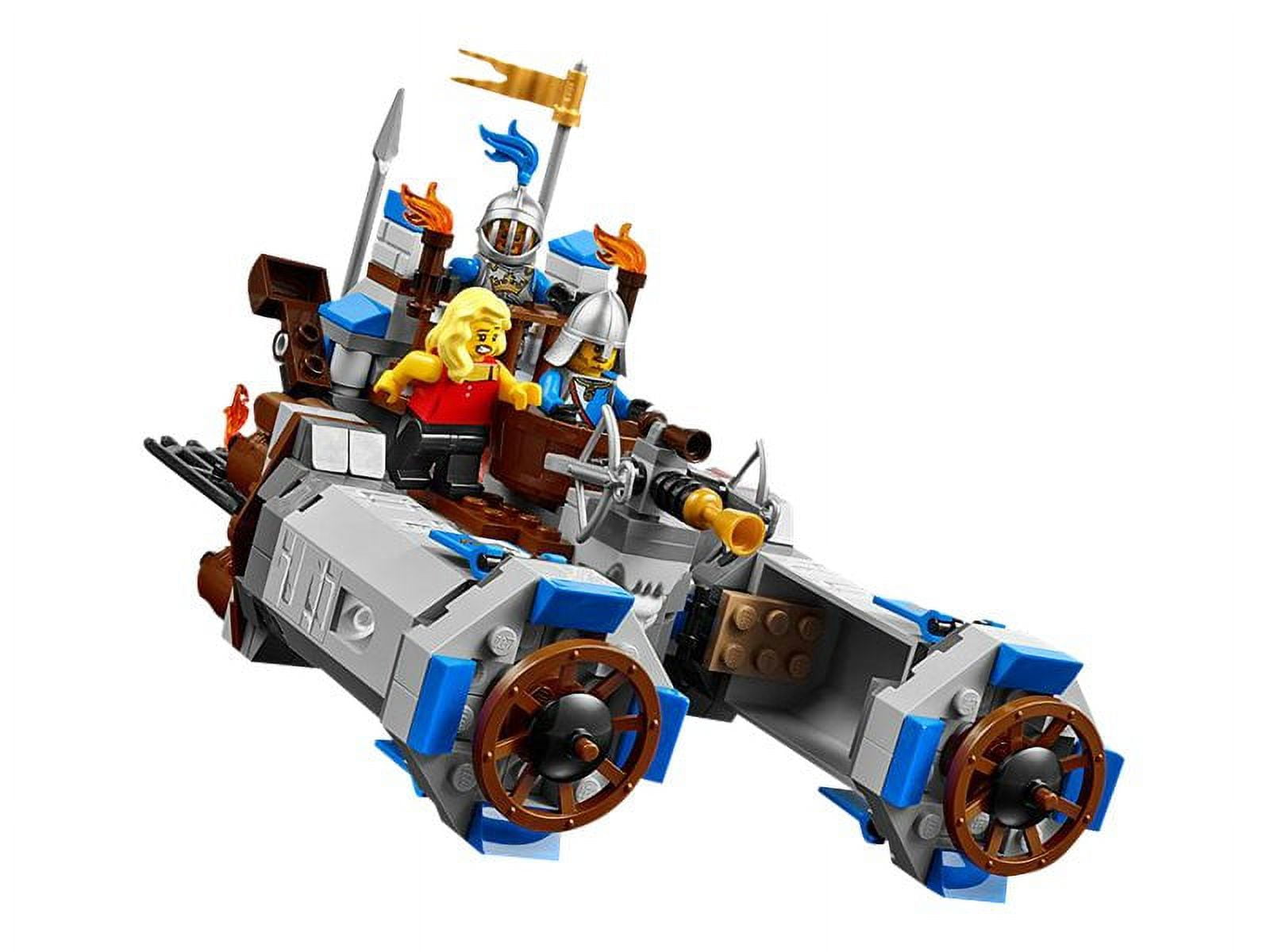 Includes 3 minifigures: the knight, Sir Stackabrick; the soldier, Gallant Guard; and Where Are My Pants? actress, Sharon Shoehorn. Castle Cavalry features a mounted, turning crossbow, cannon, 2 catapults and 2 flame flick missiles. Alternative build castle includes lockable doors, crossbow and skeleton bones plus mobile catapult. Grab the helpless civilians with the fast-moving Micro Manager’s claws. Official LEGO set with 424 pieces.