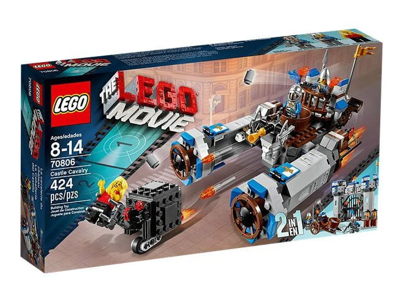 Key Features and Benefits: Includes 3 minifigures: the knight, Sir Stackabrick; the soldier, Gallant Guard; and “Where Are My Pants? actress, Sharon Shoehorn” Castle Cavalry features a mounted, turning crossbow, cannon, 2 catapults and 2 flame flick missiles Alternative build castle includes lockable doors, crossbow and skeleton bones plus mobile catapult Grab the helpless civilians with the fast-moving Micro Manager’s claws Fire the flame flick missiles of the Castle Cavalry at the Micro Manager Keep a look-out from the castle with the knight and mobile catapult A brilliant 2-in-1 building experience Includes building instructions for both models