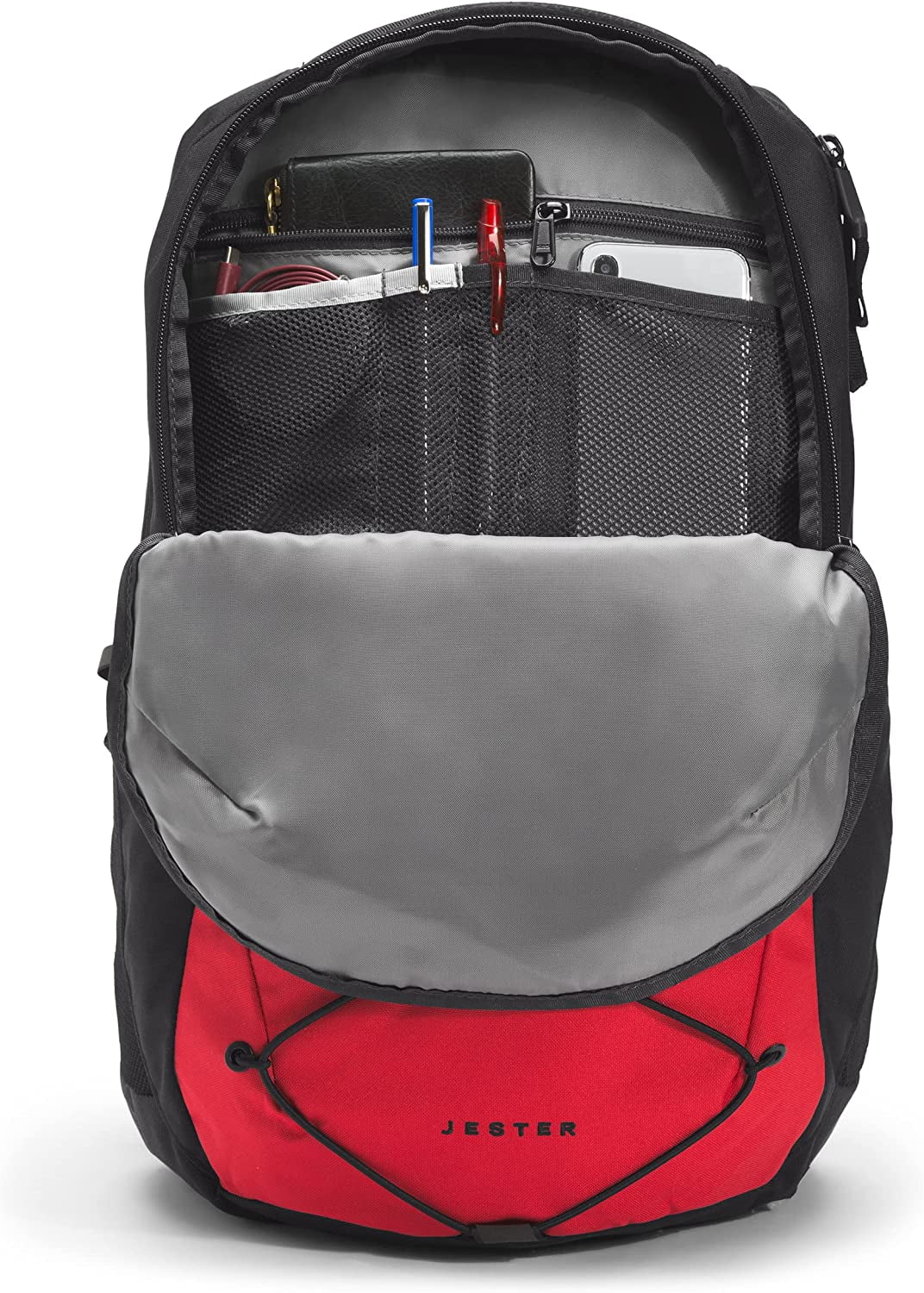 ALWAYS READY. We gave our much-loved Jester backpack an update: we’ve increased its recycled content, simplified the internal organization and it can now stand unsupported. Oh, and it’s proudly endorsed by the American Chiropractic Association.,FLEX VENT TECHNOLOGY. Our FlexVent suspension system features a flexible yoke built from custom injection-molded and flexible shoulder straps, a padded mesh back panel and a breathable lumbar panel for comfortable, ventilated support.,TOTAL ORGANIZATION. The front compartment has an extra padded 16″ laptop sleeve and zip pockets for additional protection. Two water bottle pockets double as multi-use pockets to quickly secure things when you’re crossing the quad.,TAKE ON THE DAY. An essential closet staple, this daypack is a go-to classic for outdoor exploration. Start living your outdoor lifestyle while proudly wearing the badge of exploration with The North Face.,TECH SPECS. Dimensions: 11″ x 8.25″ x 18.13″ (27.9cm x 21cm x 46.1cm) Laptop Sleeve: 12.75″ x 11″ (32.4cm x 27.9cm) Avg Weight: 1 lb 10 oz Volume: 28 L This item is not intended for use by children 12 and under.