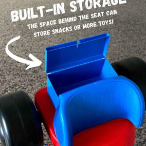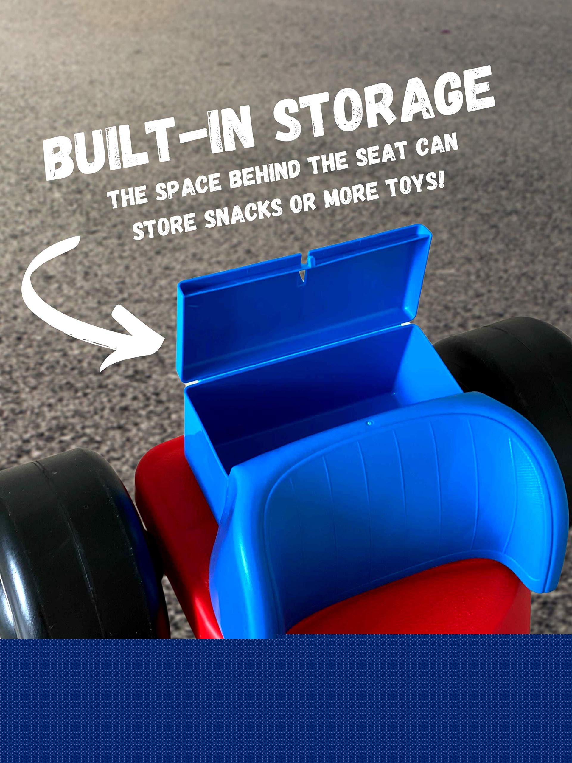 – BUILT-IN STORAGE: The space behind the seat can store toys or snacks!