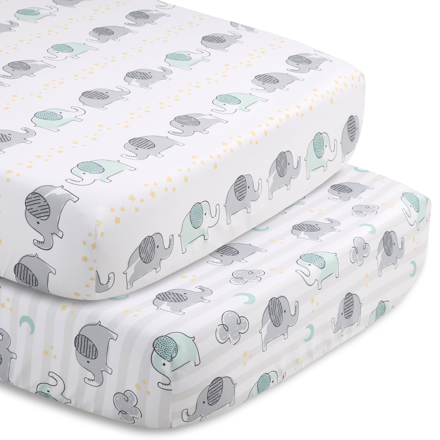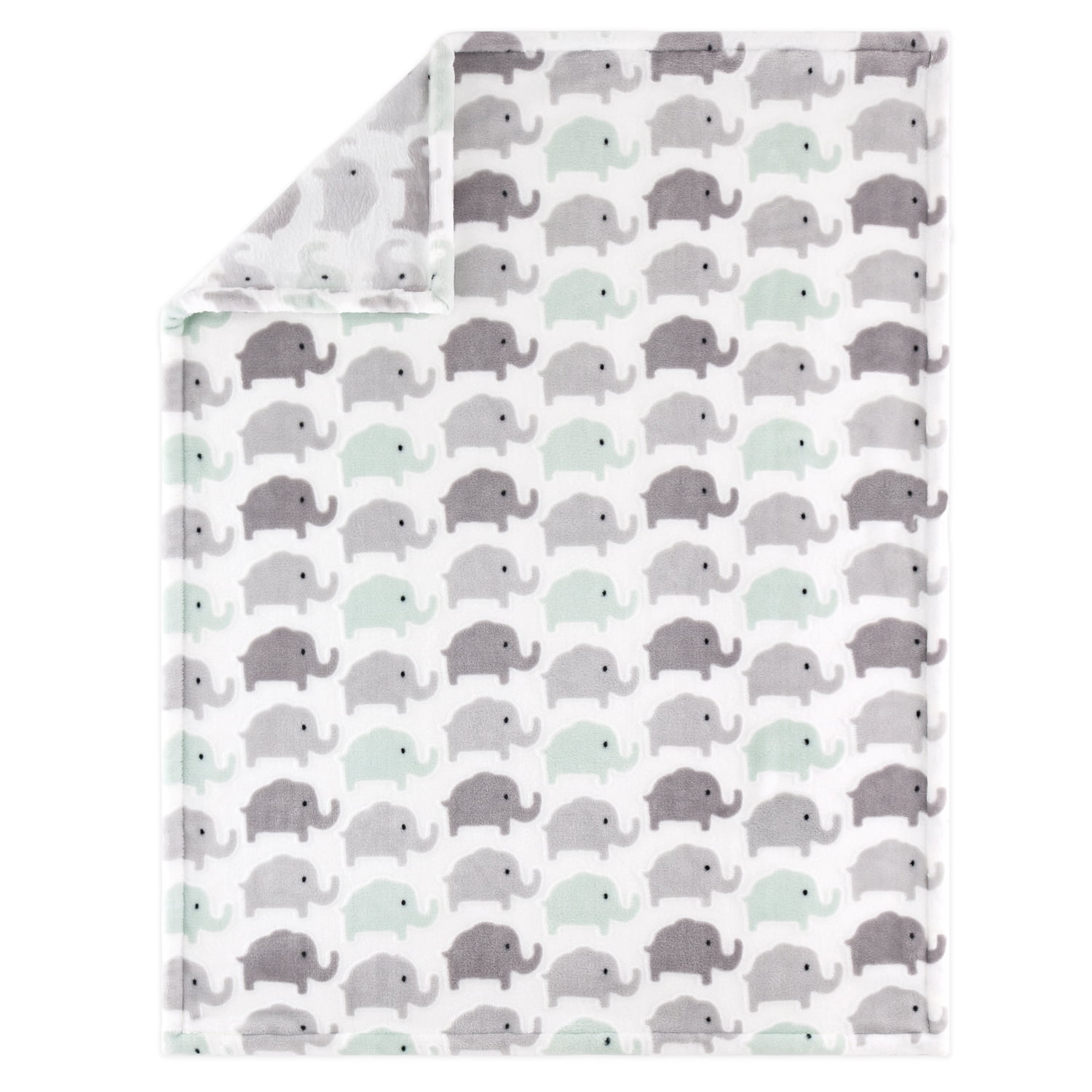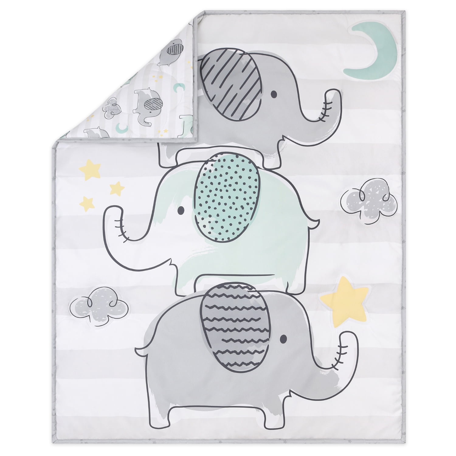 The Peanutshell Grey and Mint Elephant Dreams 5 Piece Crib Bedding Set for Baby Boys or Girls, Nursery Set with Blanket