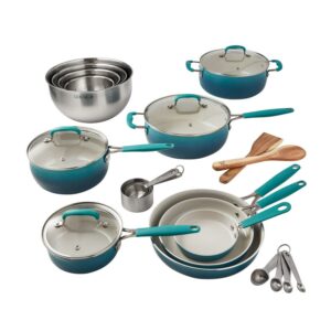 The Pioneer Woman 25 Piece Ceramic Nonstick Aluminum Easy Clean Cookware Set, Ombre Teal
