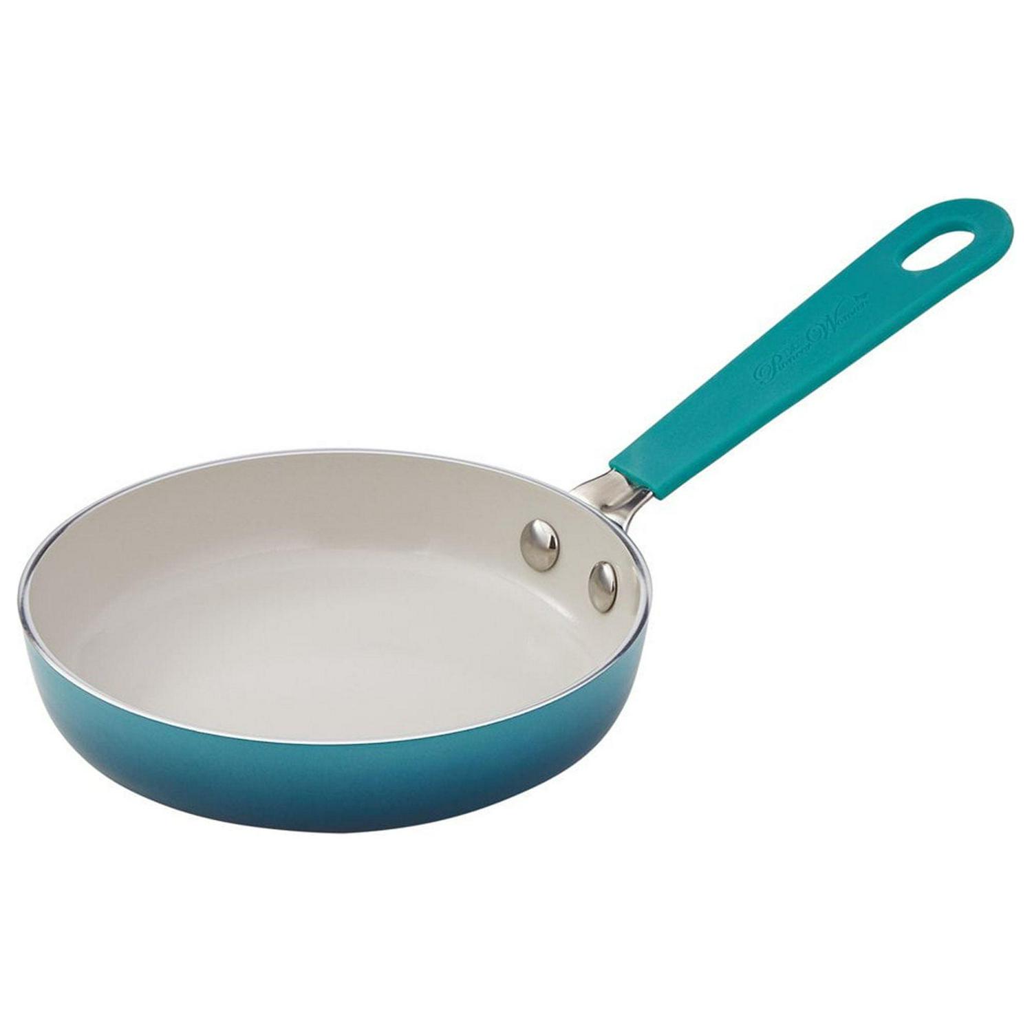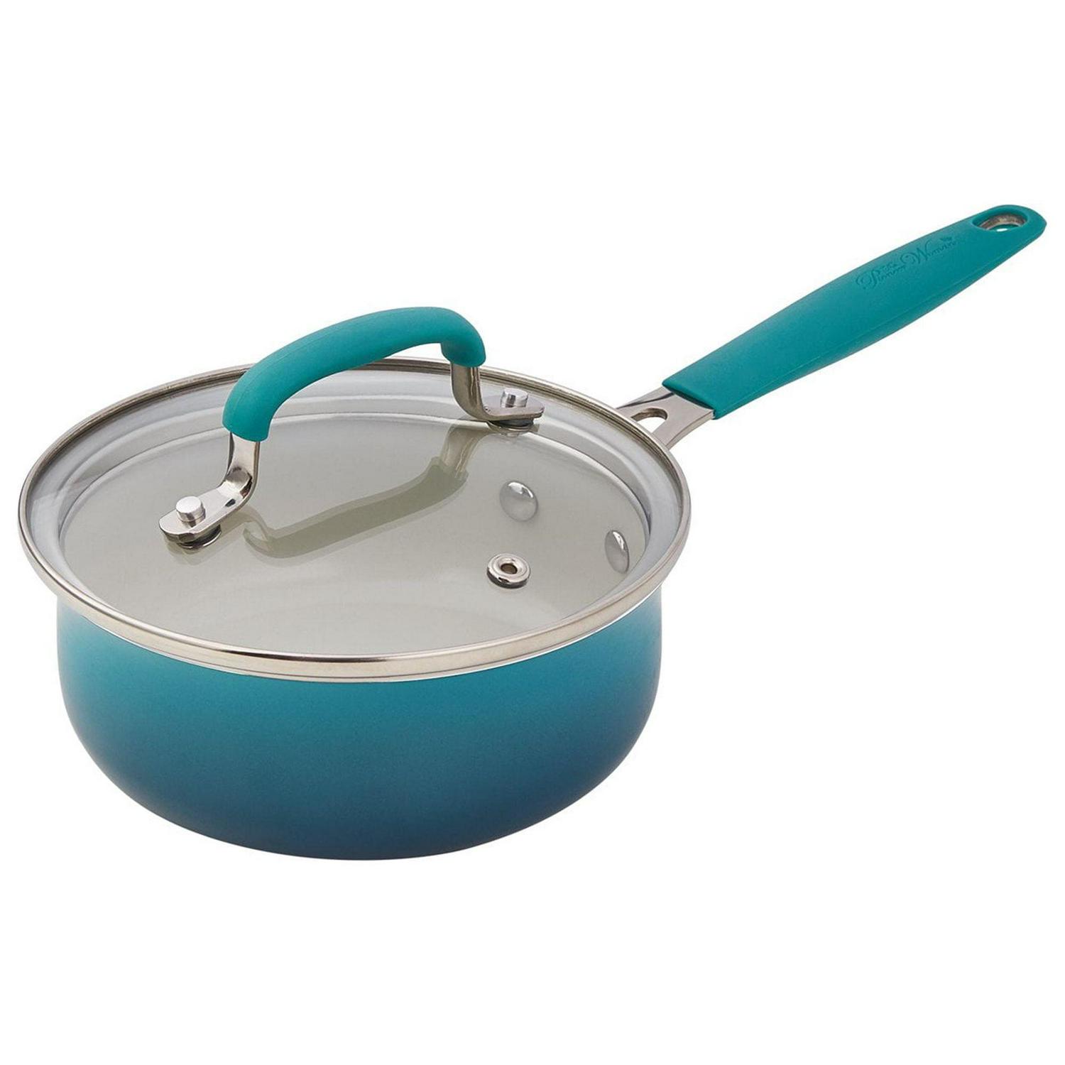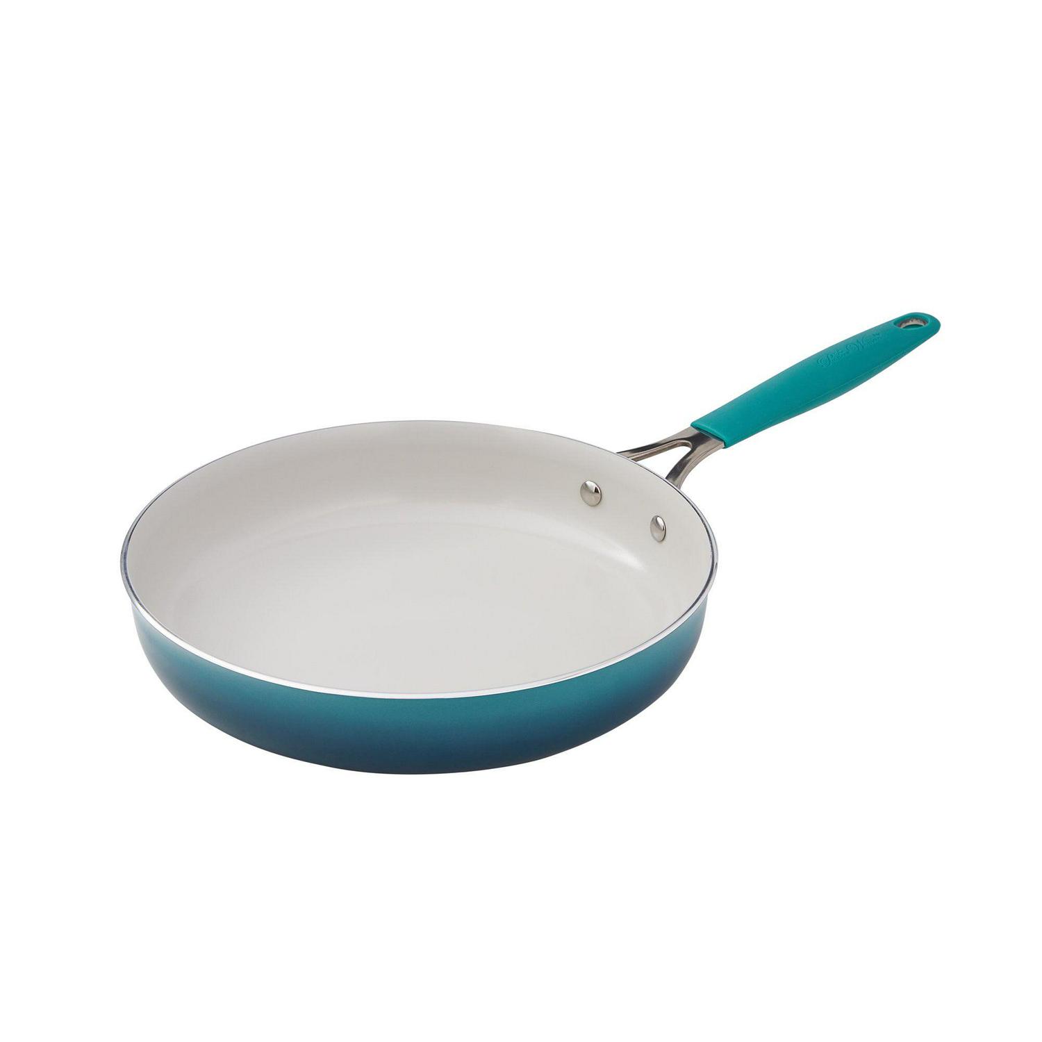 Any home cook can become a bona fide country chef with the Teal 25-Piece Cookware Set. It provides excellent heat conduction and uniform cooking on just about any stovetop, including gas, electric, halogen, and vitroceramic. Each cookware piece comes fitted with a durable aluminum body that delivers quick and even heating throughout and has riveted stainless steel handles that are oven safe up to 350 degrees Fahrenheit, allowing you to keep your dishes warm and ready to serve for longer.Their PFOA- and PFTE-free ceramic non-stick interiors make it easy to remove food once it’s done cooking with the set’s included wooden turner and spoon. Everything you need to make a full-on family meal is right here in The Pioneer Woman Ombre Teal 25-Piece Ceramic Nonstick Aluminum Cookware Set.