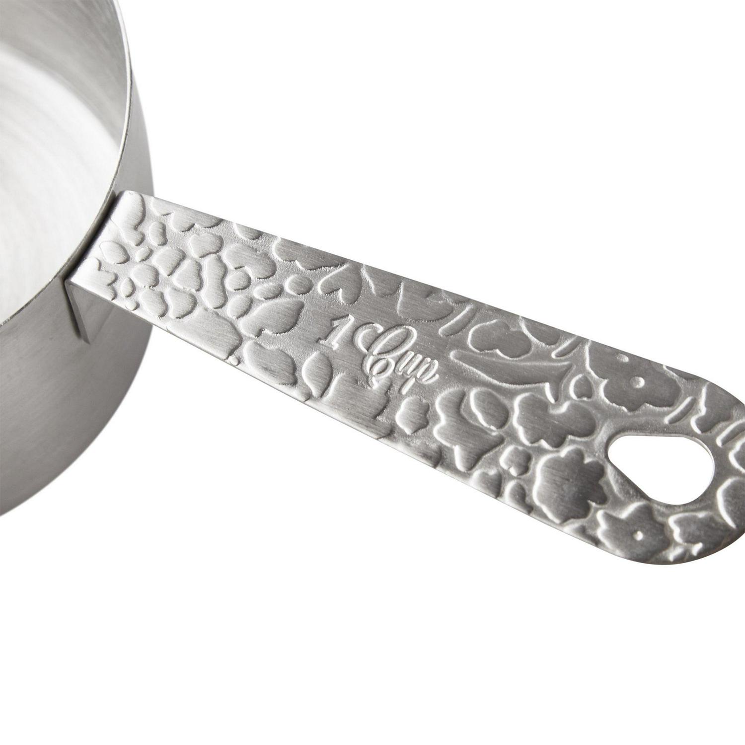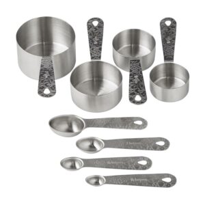– Dutch oven with lid, (1) 8″ skillet, (1) 10″ skillet, (1) egg pan, (1) acacia wood turner, (1) acacia wood ladle, (4) stainless steel mixing bowls in nesting sizes, (1) stainless steel measuring cups set, and (1) stainless steel measuring spoons set