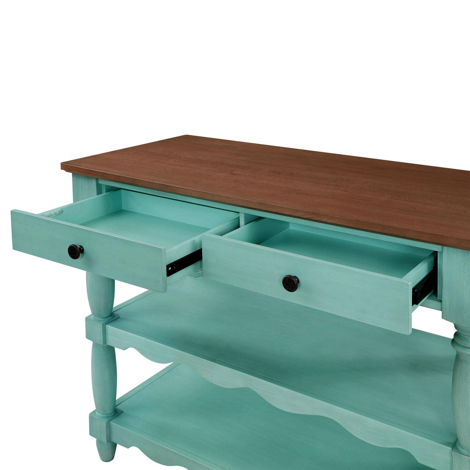 Bring the timeless charm of Ree’s ranch into your own home with The Pioneer Woman Teal Kitchen Island. This multifunctional island features two bottom shelves that you can use for storage or display. It also has two storage drawers with full-extension, ball-bearing glides. It will make a wonderful addition to your kitchen or any room in your home. Mix and match this island with other furniture from The Pioneer Woman Collection. Add vintage-inspired style to your home with The Pioneer Woman Teal Kitchen Island.