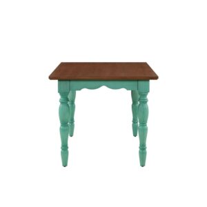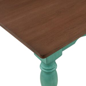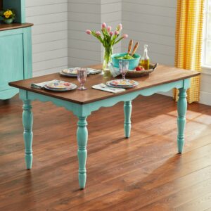 Gather friends and family around The Pioneer Woman Teal Dining Table. It features a traditional design with a light brown table top and a teal base that will add farmhouse flair to your home. With a sturdy wood construction, this dining table can comfortably seat six people for meals and family game nights. It will make a wonderful addition to your dining room, kitchen, or any room in your home. Mix and match this table with other furniture from The Pioneer Woman Collection. Add vintage-inspired style to your home with The Pioneer Woman Teal Dining Table.