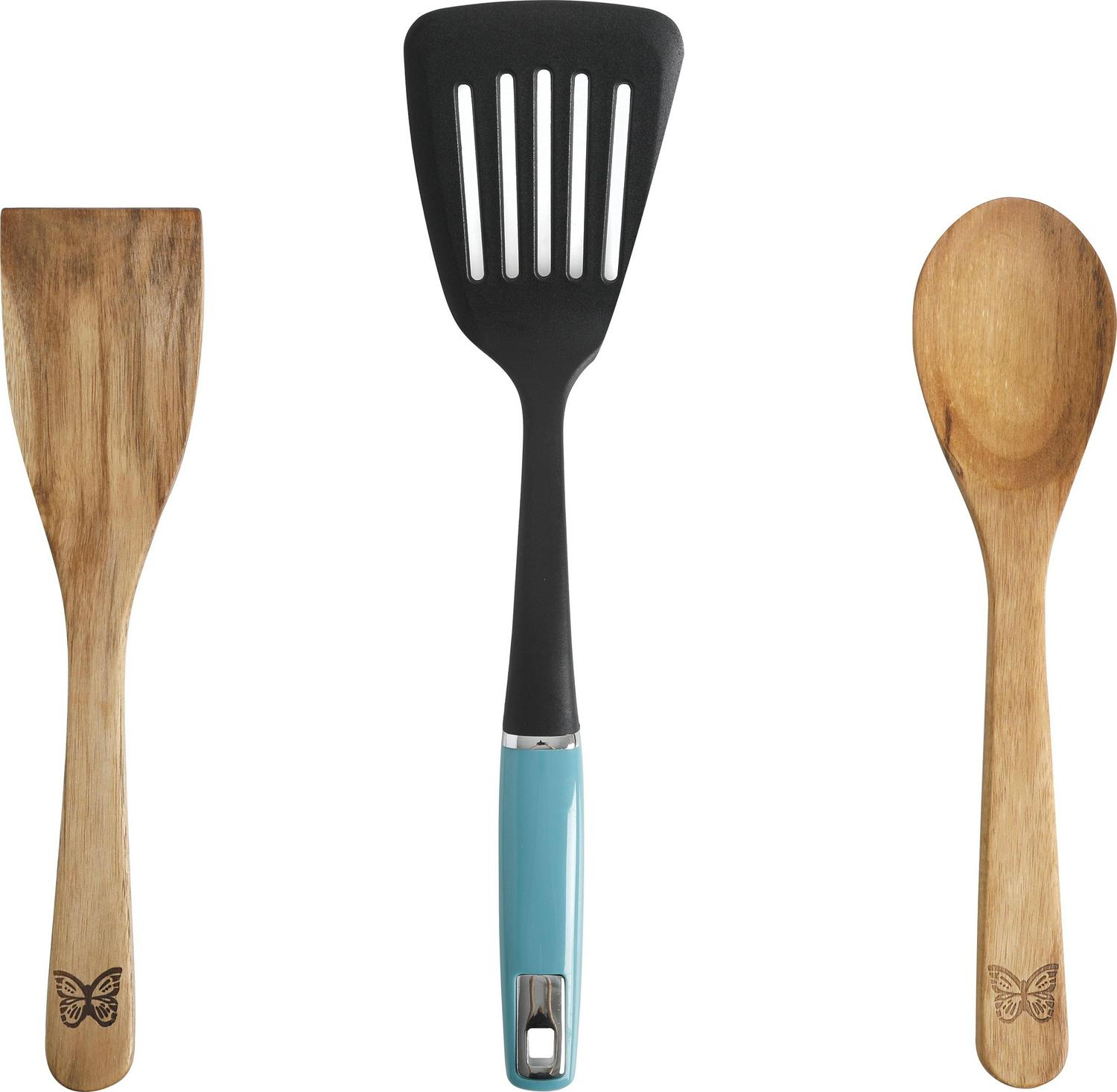 The Pioneer Woman Vintage Speckle 24-Piece Cookware Combo Set is ideal for outfitting your kitchen with everything you need to prep, cook and bake any meal in your repertoire. This stunning set features an 8-piece aluminum cookware set, four ceramic measuring cups, four ceramic measuring spoons, a pre-seasoned cast iron skillet with silicone handles, two pre-seasoned cast iron au gratins, two acacia wood tools and a nylon spatula. The cookware is available in two signature shades: light blue and red. Each ceramic piece in the set beautifully complements each shade, adding a touch of whimsy with each design. Meet Ree Drummond is a NY Times Best Selling Author, TV personality, social media phenom, and the woman behind the popular Pioneer Woman lifestyle blog that started it all. She s also a lover of butter, basset hounds, Ethel Merman, her hunky, cowboy husband Ladd, and their four kids. Her casual country style and delicious recipes have made her a go-to for all things cooking and entertaining