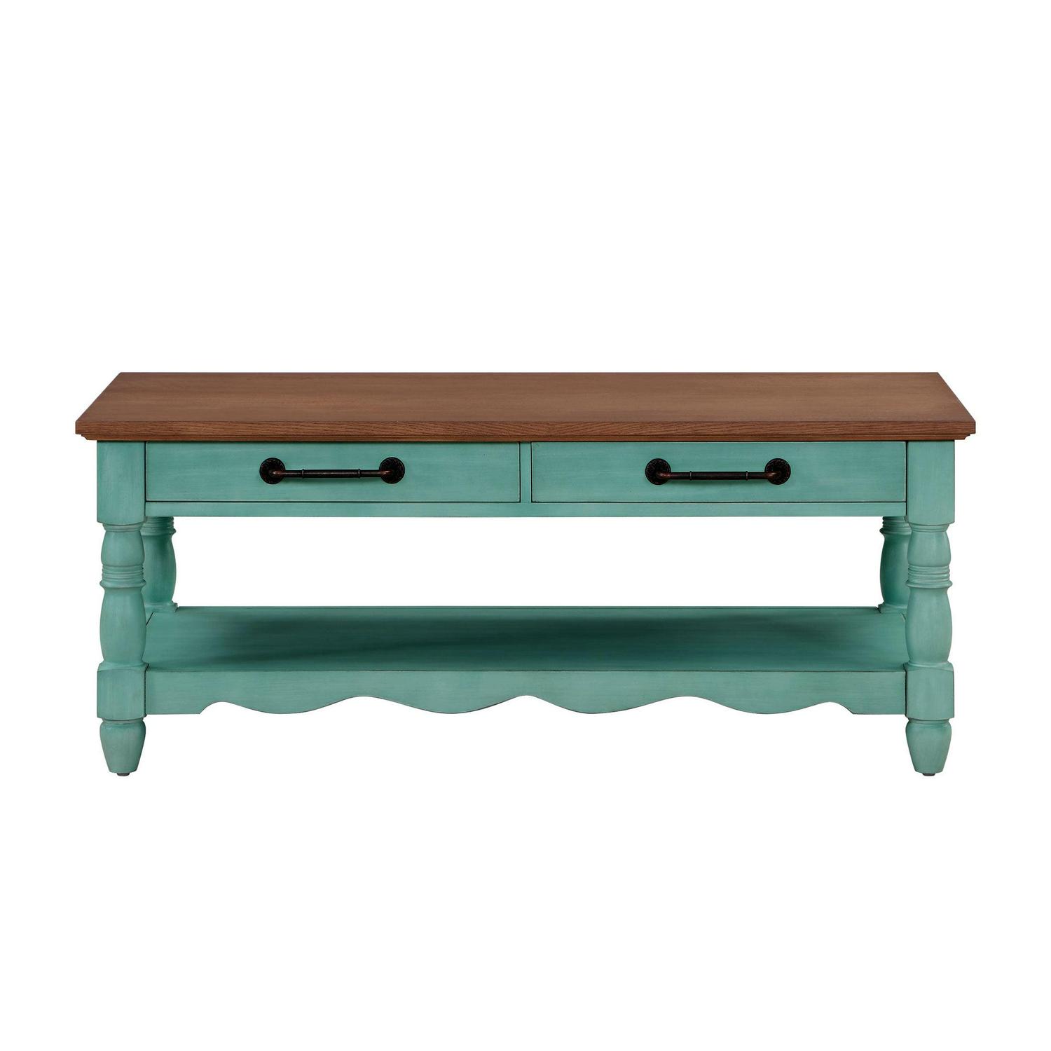 The Pioneer Woman Helen Coffee Table Made With Solid Wood Frame, Teal