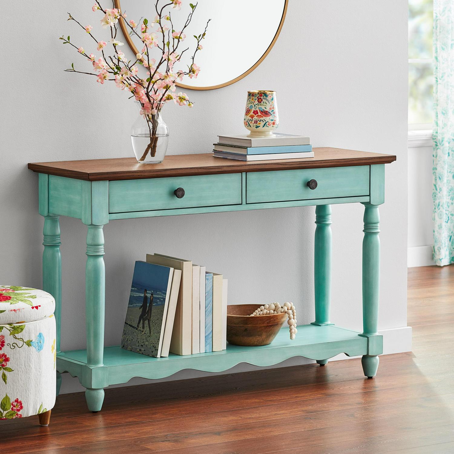 The Pioneer Woman Helen Console Table Made With Solid Wood Frame, Teal