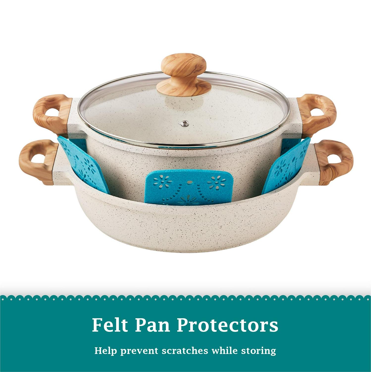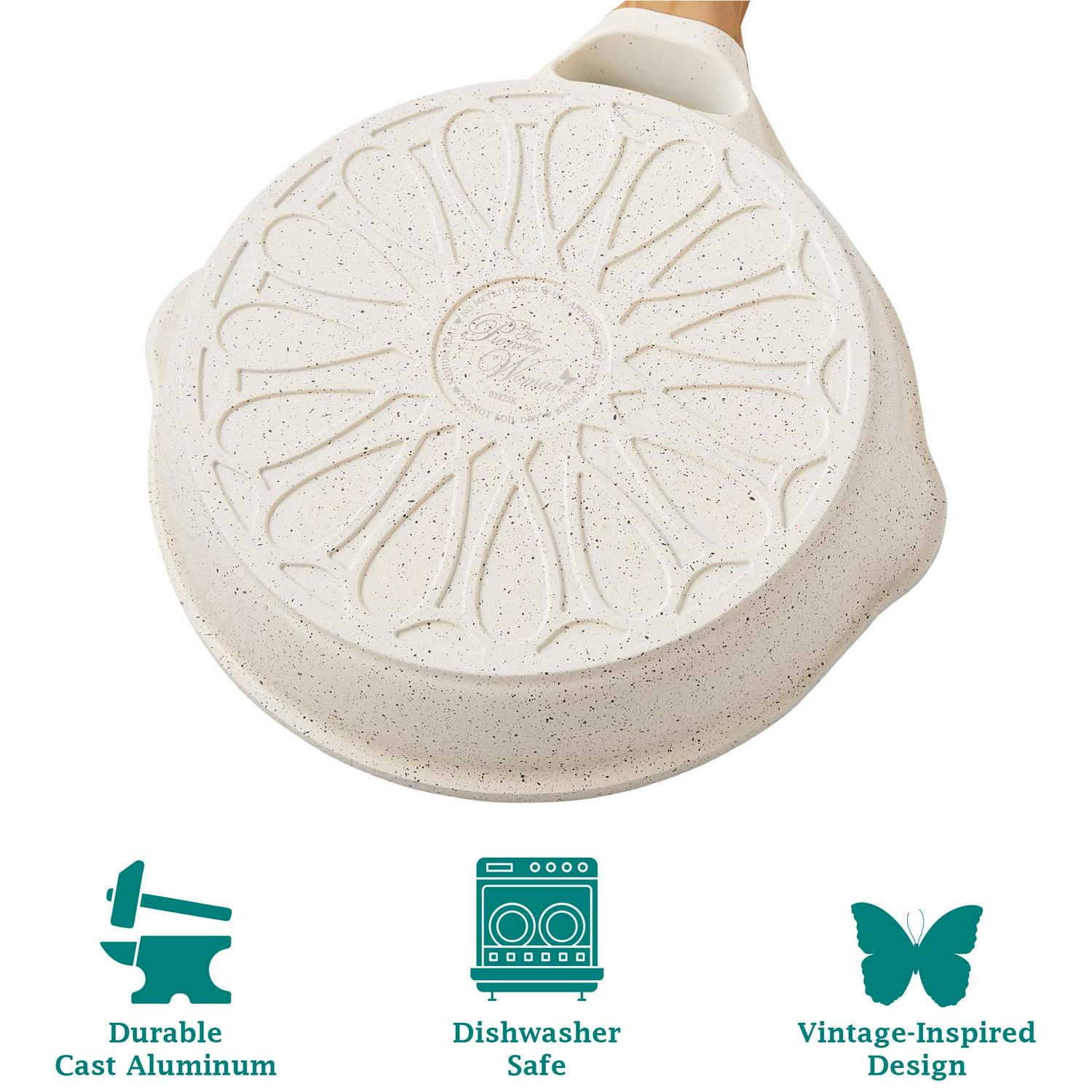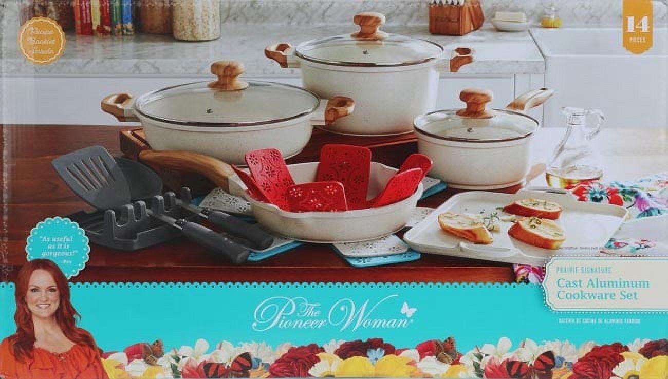 The Pioneer Woman Prairie Signature 14-Piece Cast Aluminum Cookware Set, Linen Speckle