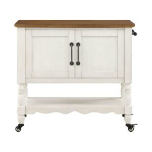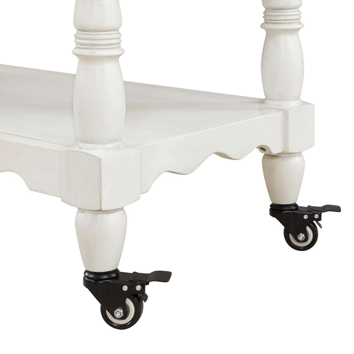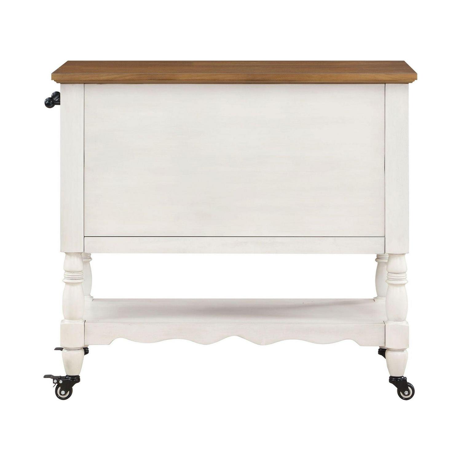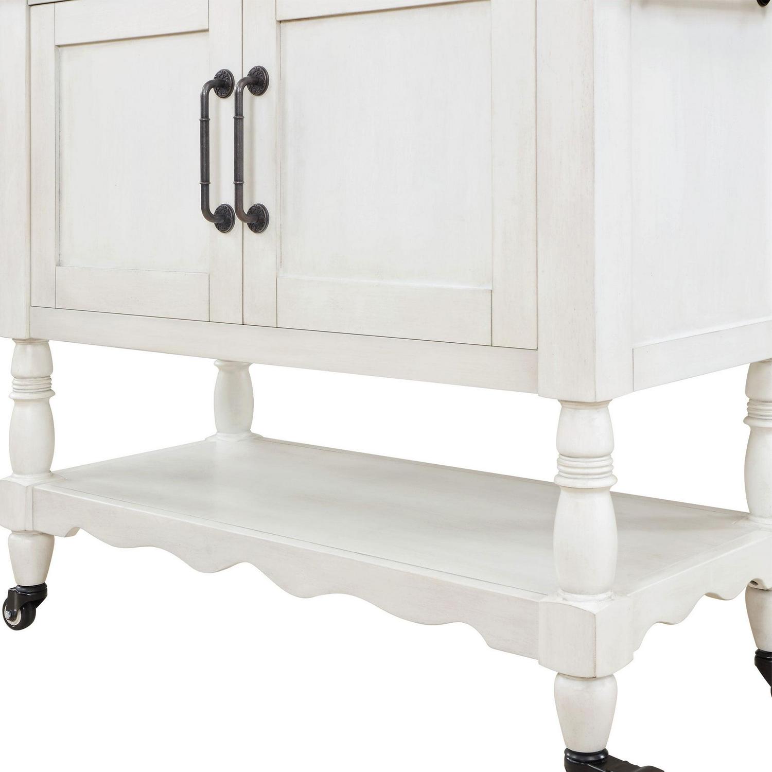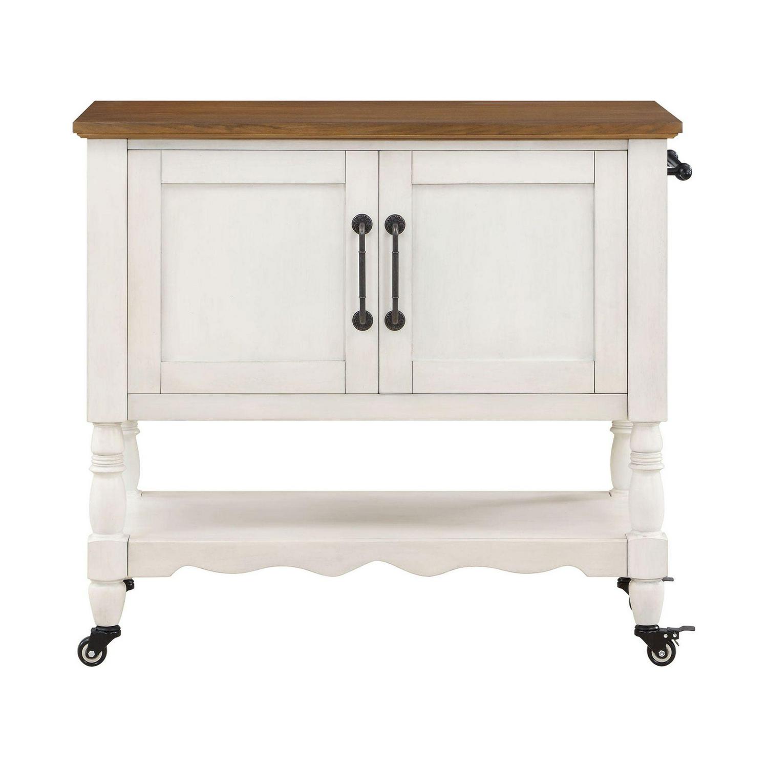 Bring the timeless charm of Ree’s ranch into your own home with The Pioneer Woman Two-Tone White Kitchen Cart. This multifunctional cart features a spacious bottom shelf that you can use for storage or display. It also has two storage cabinets with adjustable interior shelves where you could keep tablecloths, placemats, and other linens. It will make a wonderful addition to your kitchen or any room in your home. Mix and match this island with other furniture from The Pioneer Woman Collection. Add vintage-inspired style to your home with The Pioneer Woman Two-Tone White Kitchen Cart.