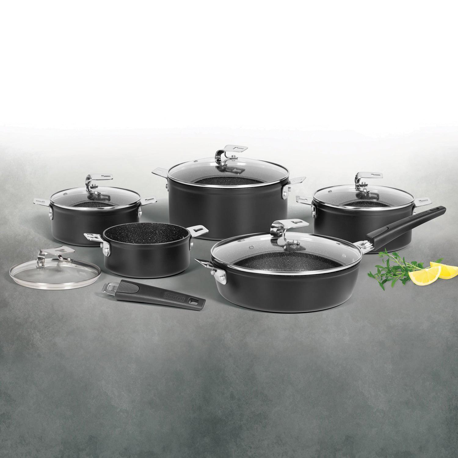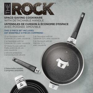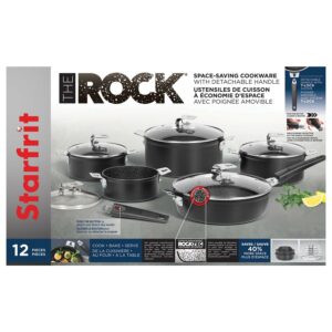 The Rock by Starfrit 12-Piece Space-Saving Set with T-Lock Detachable Handles