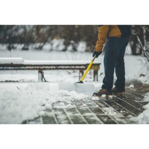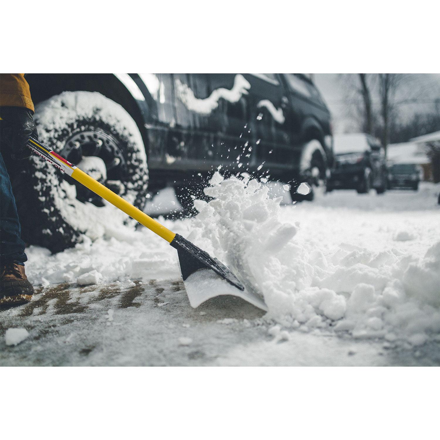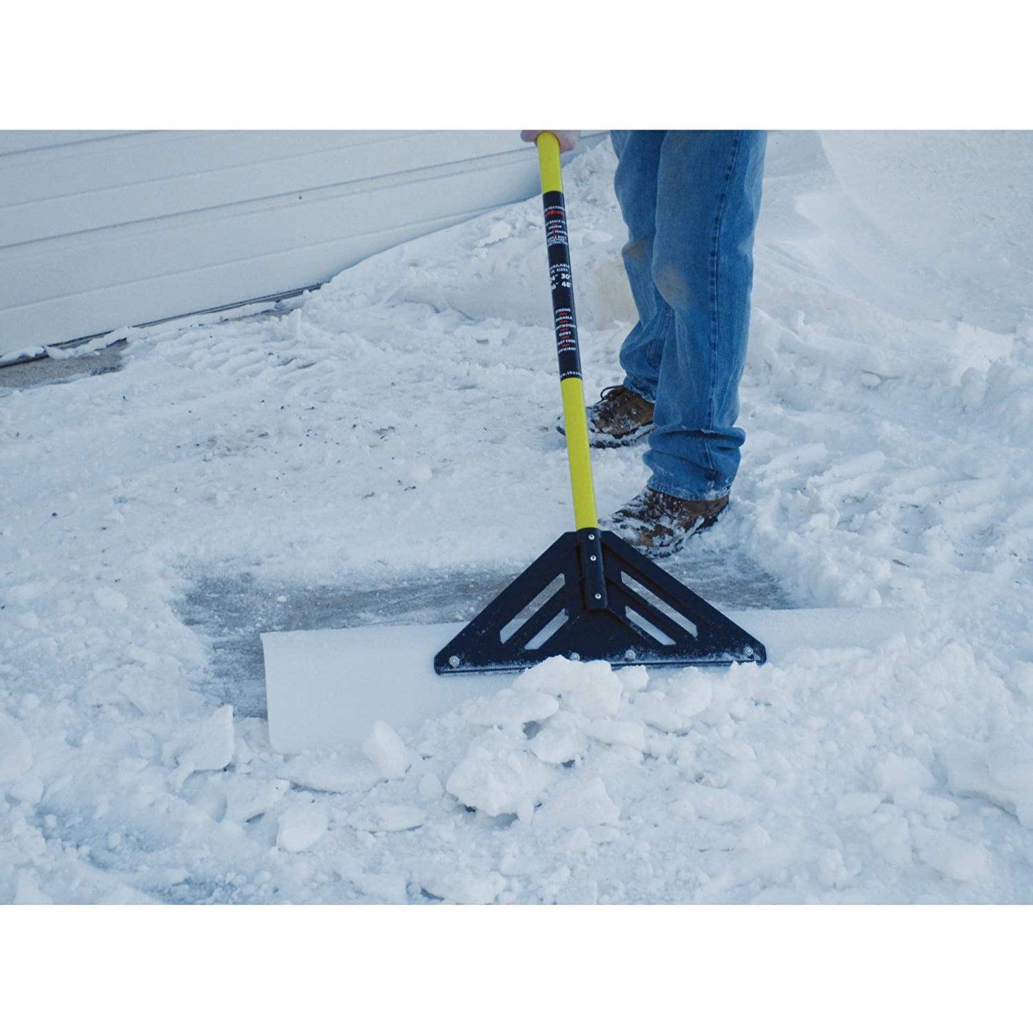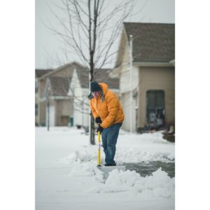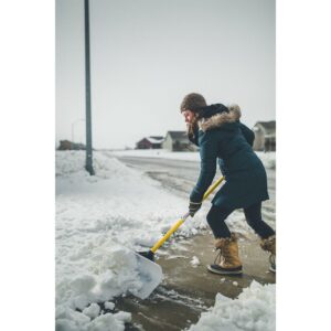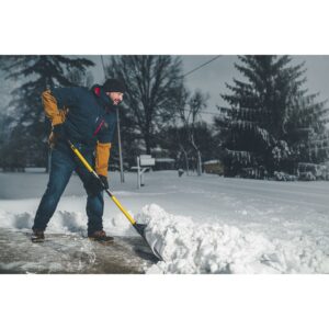 – Snow shovel with a 48-inch wide UHMW poly blade to remove snow from driveways, sidewalks, and streets