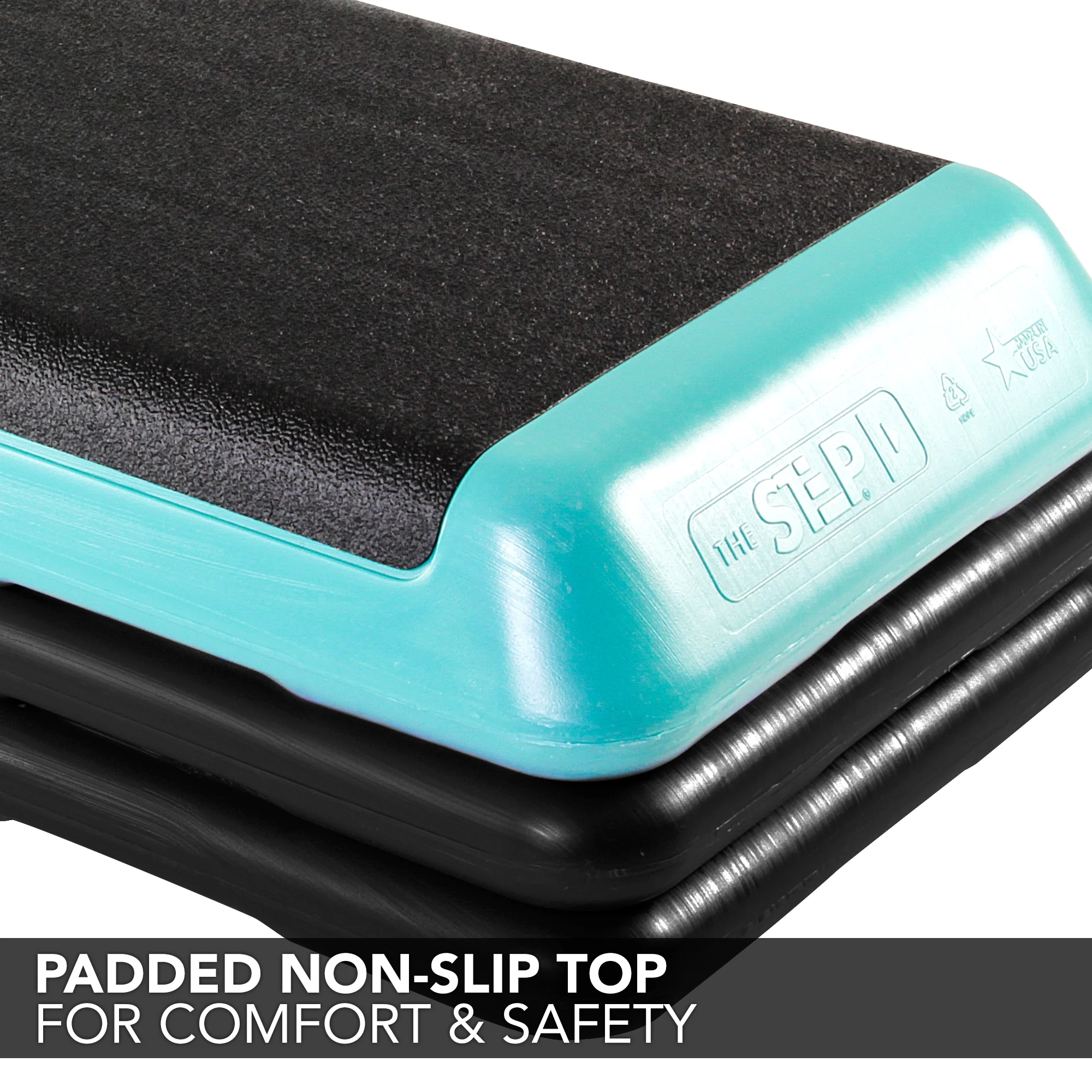 Full-size (40” L x 14” W x 4” H) aerobic platform, four original risers, and streaming videos Four nonskid feet on each riser and platform prevent sliding or scratching floors Colors may vary