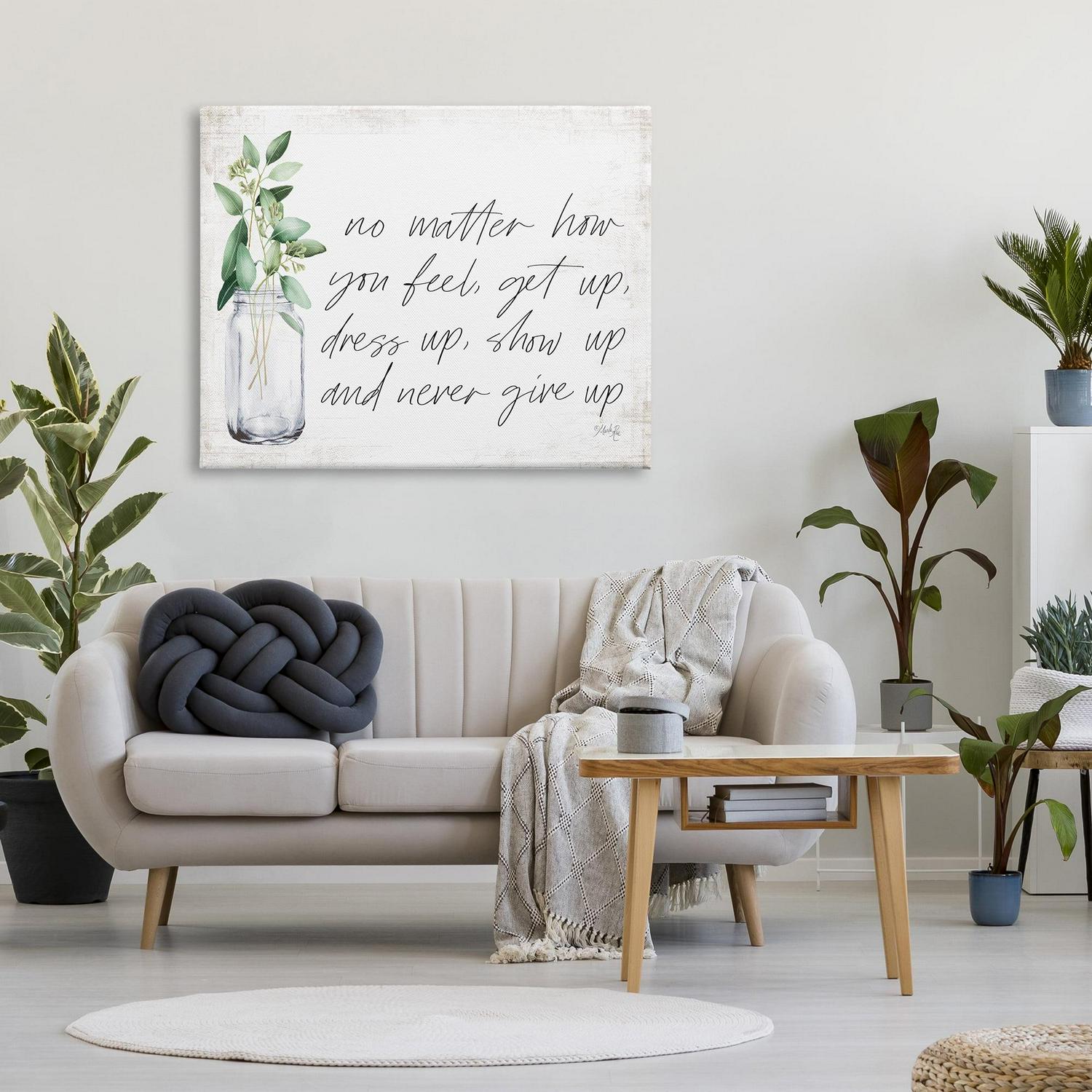 The Stupell Home Decor Collection No Matter How You Feel Never Give Up Inspirational Plants in Mason Jar Canvas Wall Art
