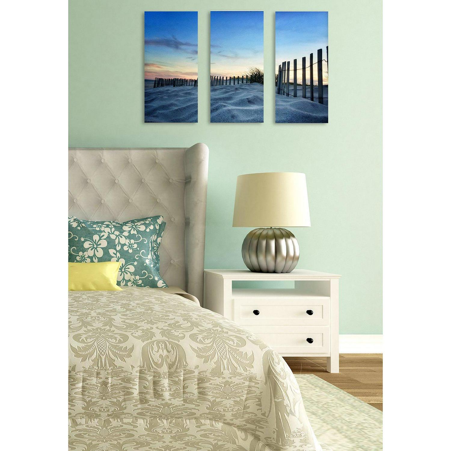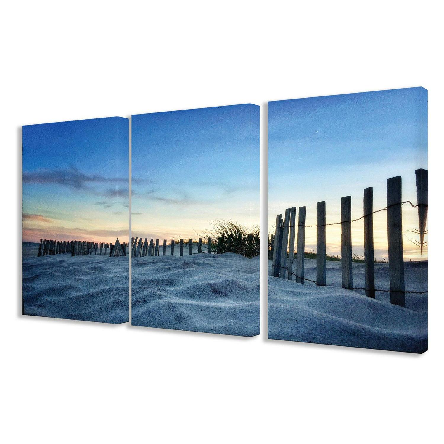 Twilight shades of blue against tan sand on the The Stupell Home Decor Collection Sand Dune Fence At Sundown Canvas Art – Set of 3 make you feel like you’re right there on the beach. This triptych is hand-stretched canvas over wood. The gallery-caliber work is perfect for display at the office or anywhere in your home.