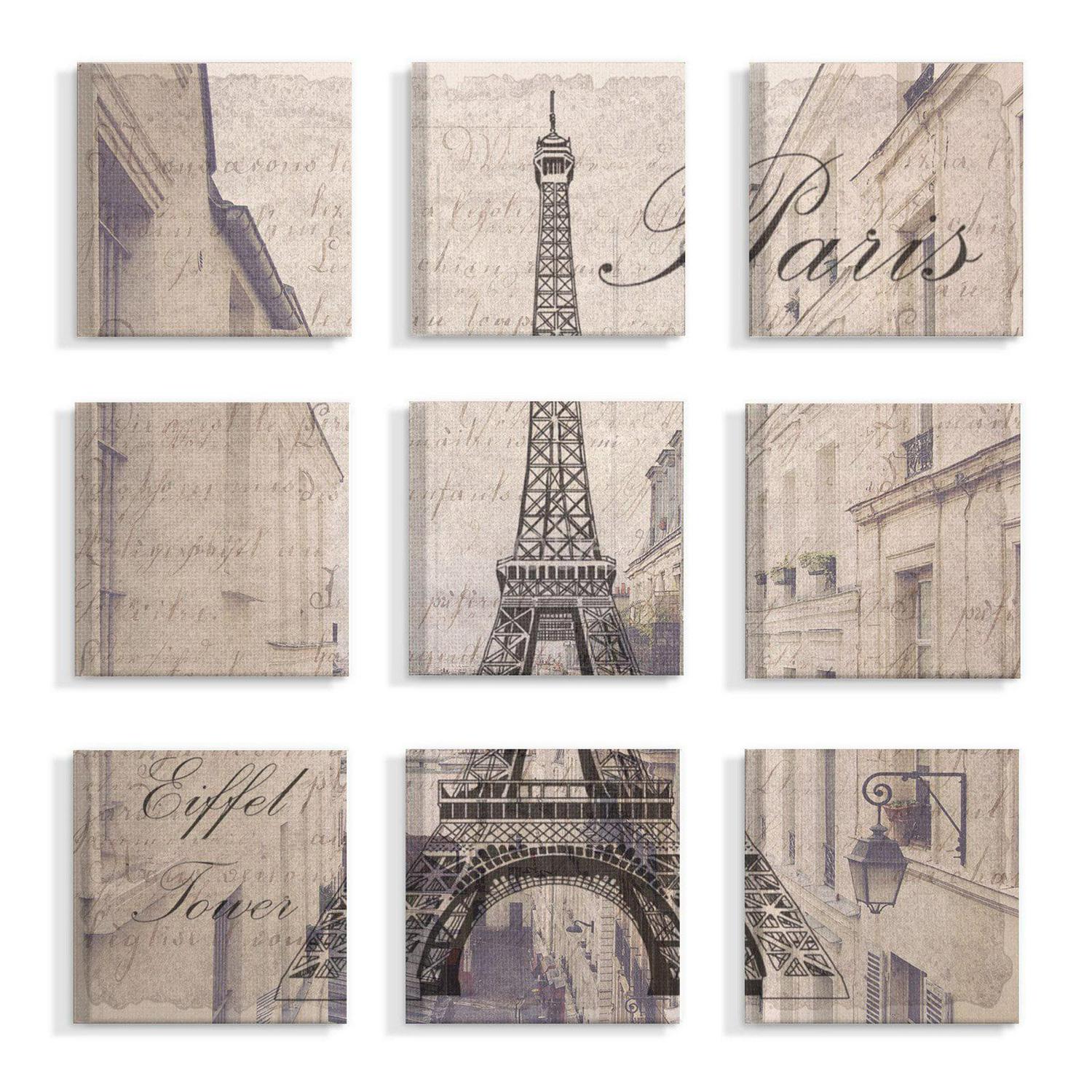The Stupell Home Decor Collection Vintage Postcard Eiffel Tower Wall Art Set