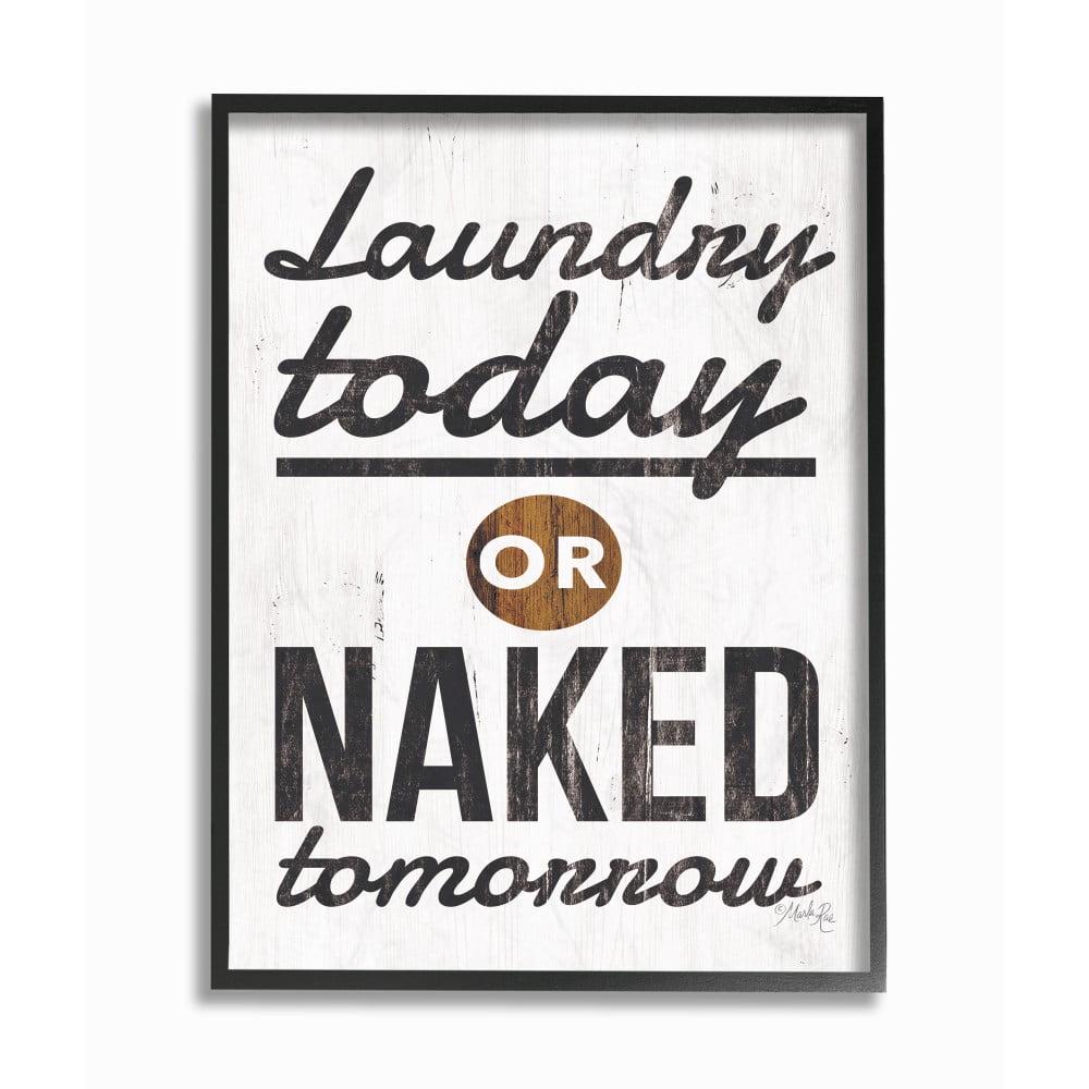 The Stupell Home Decor Laundry Today Naked Tomorrow Rustic Black and White Wood Look Sign