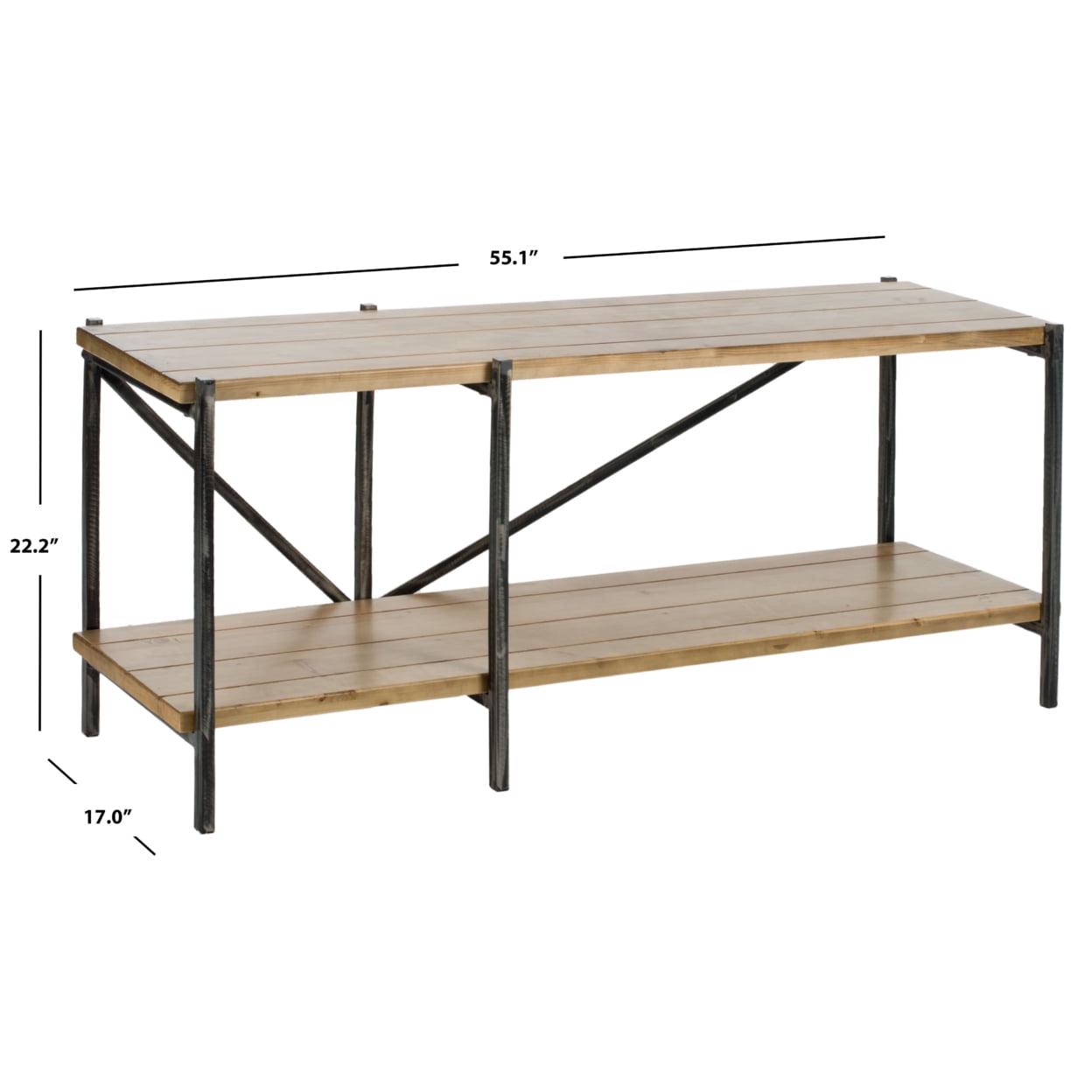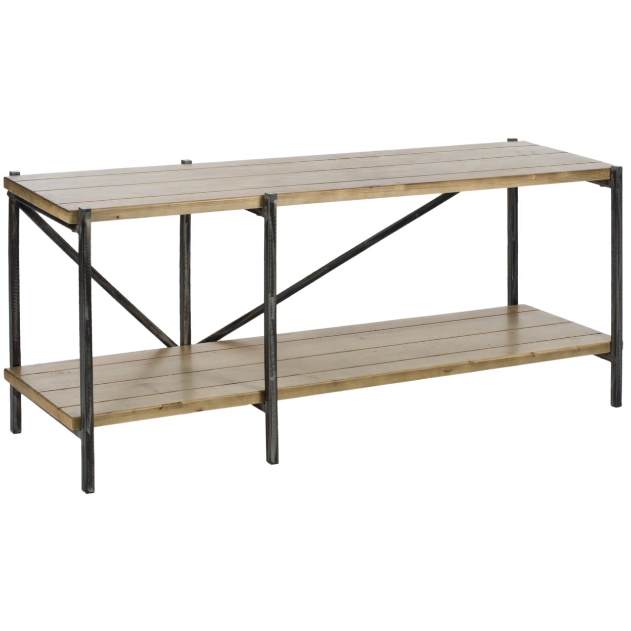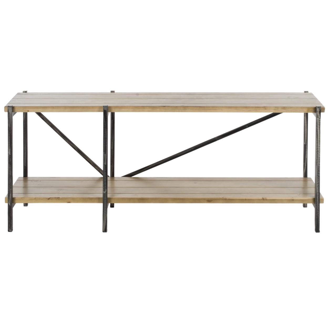 SAFAVIEH Theodore Media Console Table Natural This Theodore Console Table embraces rustic Belgian style with masterful fervor. Theodore’s clean lines and natural wood surfaces breathe charming rustic simplicity into any living space, making it an ideal focal point in the hall or entryway.
