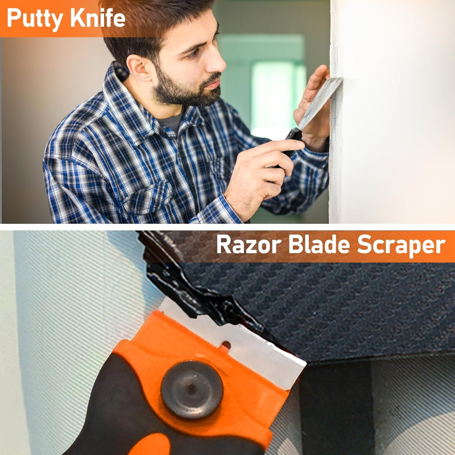 【Orange Tool Kit】- Almost every basic hand tools you need for work and DIY projects around the house are included. Flashlight, magnetic wristband, scraper, hammer, level, auto lock tape measure, pliers, screwdrivers and bits, wrenches, scissor, cable ties, utility knife, hex keys and hardware kit. 【Great Gift for Everyone】 – The THINKWORK orange 207 piece tool set is the perfect present for Christmas, birthdays, anniversaries, Father’s Day, and more. The compact size design makes these tools suitable for all users. The stylish orange color tools and carrying pouch make this tool kit a great gift for DIY enthusiasts. 【Long-Lasting Tools 】- Most of the tools are being made from CR-V steel. Heat treated and chrome plated to resist corrosion. This tool set will last for years under normal use. 【Large Orange Tool Bag】- 13 inch tool bags are designed for carrying small to medium-sized hand tools and other small accessories. It is constructed with a 600D polyester fabric so it can withstand the load of your tools. The bag features a wide opening design for you to easily store, organize and take out your tools. 【Ideal for Household Maintenance】- Our tool kit is perfect for DIY or home repair and maintenance. All tools come with soft material grip handle that makes them more comfortable and secure than others. You easily finish and enjoy home repairs. 【Toolbox contains】 (1) 8 oz Fiber glass handle hammer (1) 9″ Torpedo level (1)Screwdriver holder (40) 1″ Screwdriver bits: Slotted 1/8″, 5/32″, 3/16″, 7/32″, 1/4″, 9/32″, POZI: PZ0, PZ1, PZ2, PZ3 Philips: PH0, PH1, PH1 X 2, PH2 X 5, PH3 X 2 Star: S0 X 2, S1 X 2, S2 X 5, S3 X 2, Hex: H1/16, H3/32. H1/8, H5/32, H3/16, H1/4, Torx: T10, T15, T20, T25 (1)Extension rod (68) Hardware kit (4) Precision Screwdriver set: Philips 2.0 mm 3.0 mm, Slotted 2.0 mm 2.4 mm (1) 5 M / 16 FT Tape measure (1) 150 CM / 60 Inch Soft Tape Measure (1) 8″ Groove-joint pliers (1) 6″ Long nose pliers (1) 6″ Slip-joint pliers (1) 6″ Adjustable wrench (4) Screwdriver Set: Slotted 1/4″ X 1-1/2″, 1/4″ X 4″, Philips: PH2 X 1-1/2″, PH2 X 4″ (8) Folding hex key set: 1/16″, 5/64″, 3/32″, 1/8″, 5/32″, 3/16″, 7/32″, 1/4″ (1) Scissors (50) Cable ties (1) Utility Knife (10) Knife blades (1) Razor Blade Scraper (20) 10pc metal blade+10pc plastic blade (1) Putty Knife (1) 5 Modes-LED Flashlight (1) Magnetic wristband (1) 13″ Tool bag